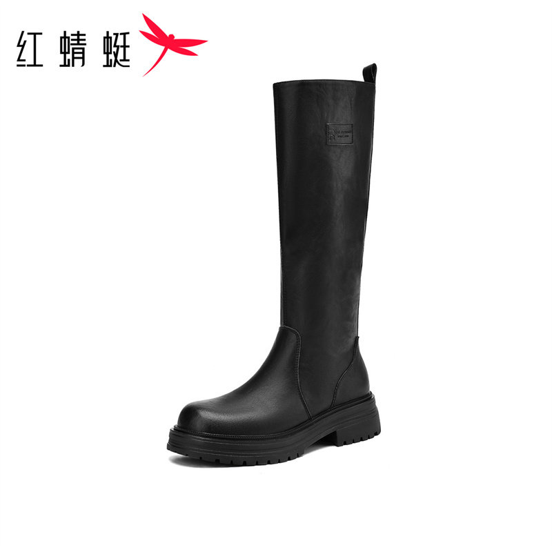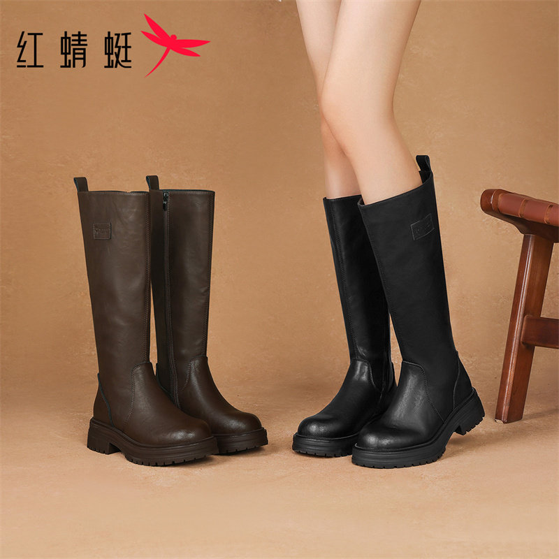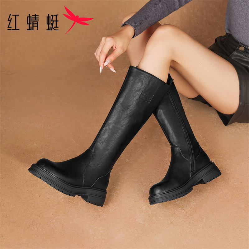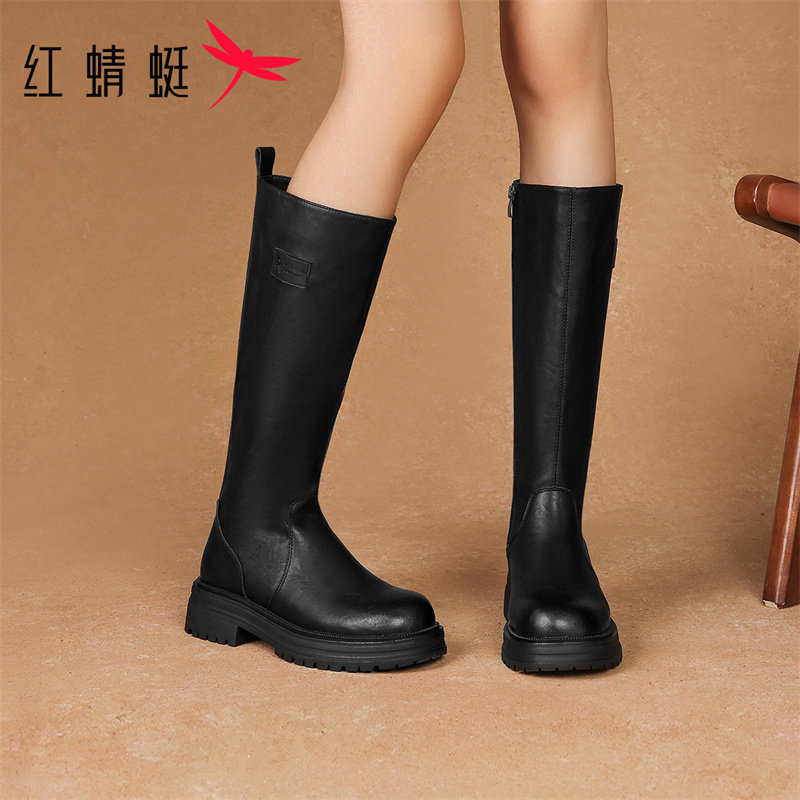📚 红蜻蜓黑色长筒靴子女款2026新款冬真皮女靴巨好看中高筒女鞋