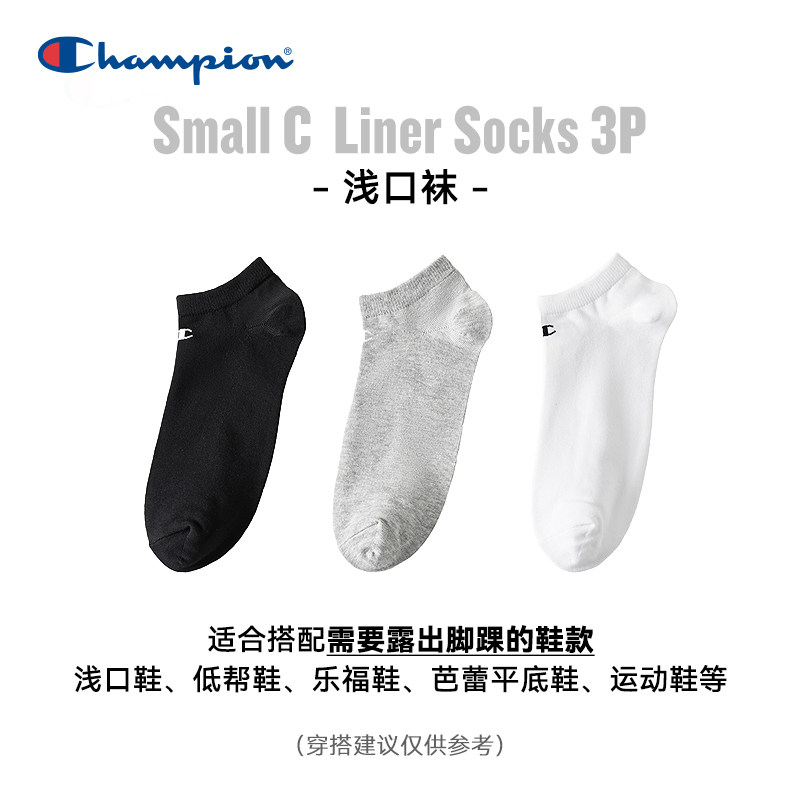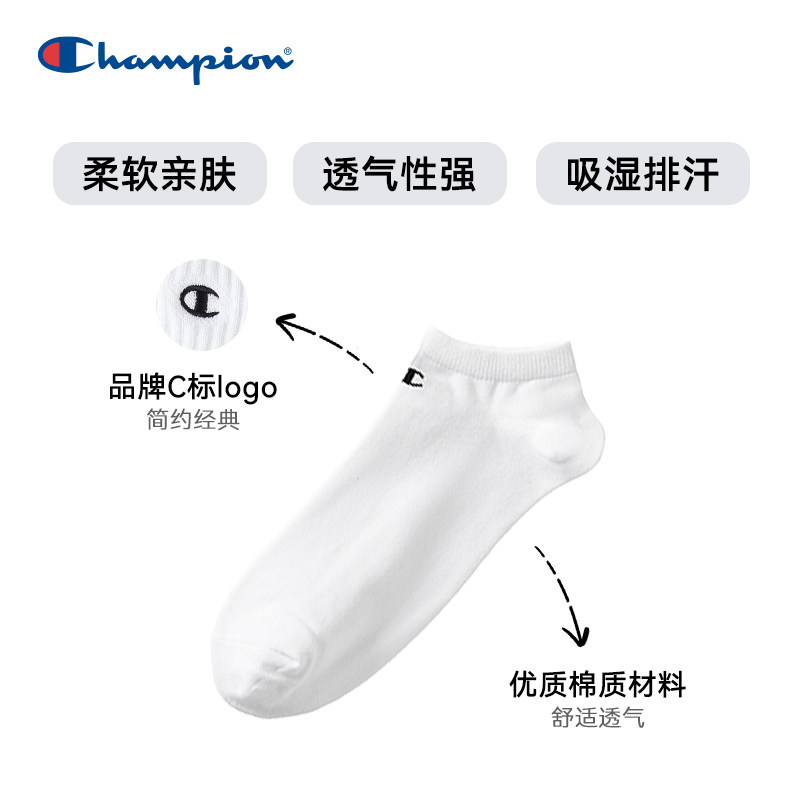 📚 champion冠军新款浅口袜纯色运动男亲肤透气袜子女3双装春夏