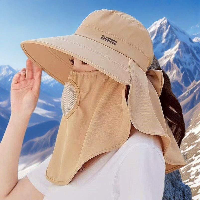 📚 防晒夏季全方位防晒透气紫外线护颈遮脸一体太阳帽面罩户外遮阳帽