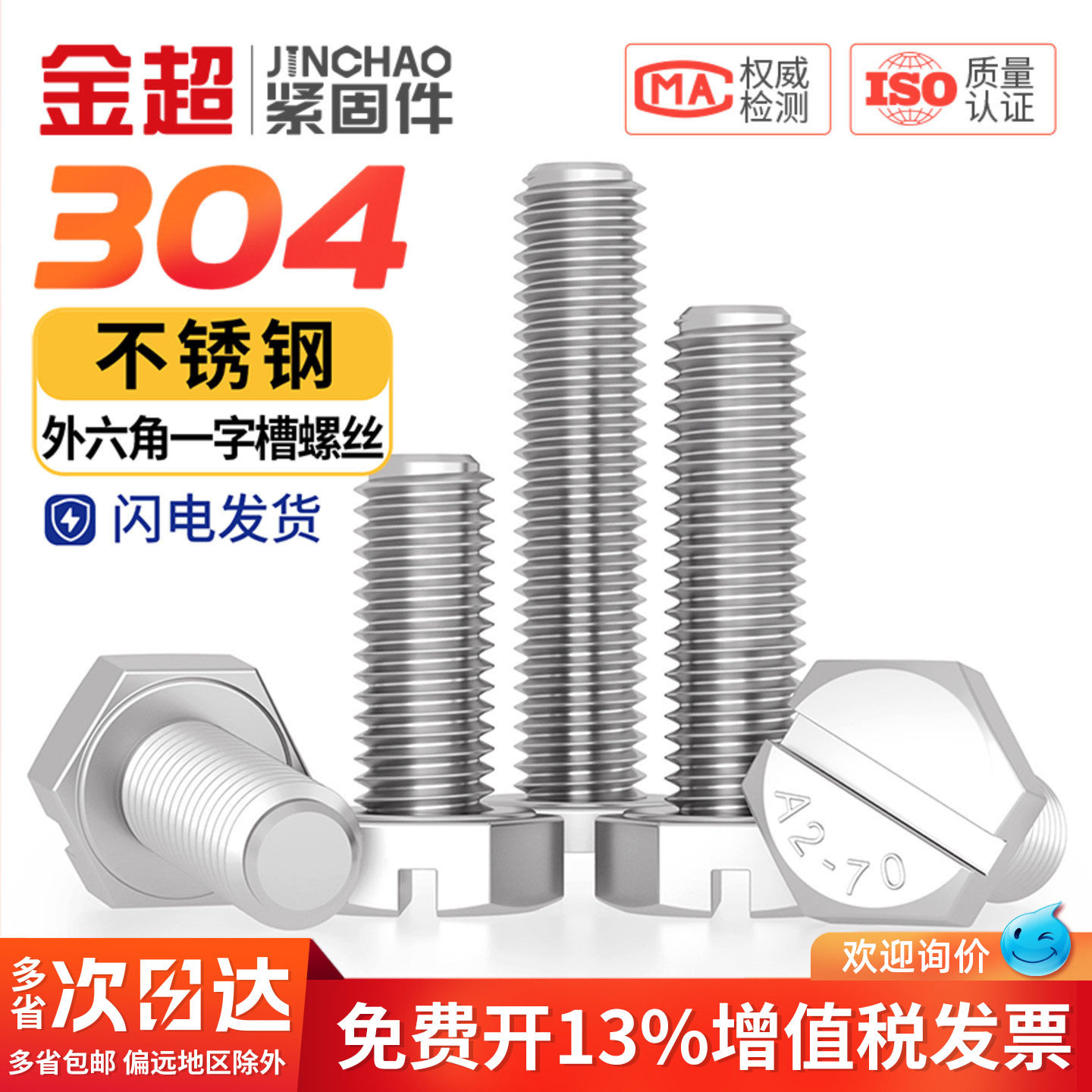 📚 金超304不锈钢开槽六角螺丝 M4M5M6M8M10 一字外六角头螺钉GB29.1
