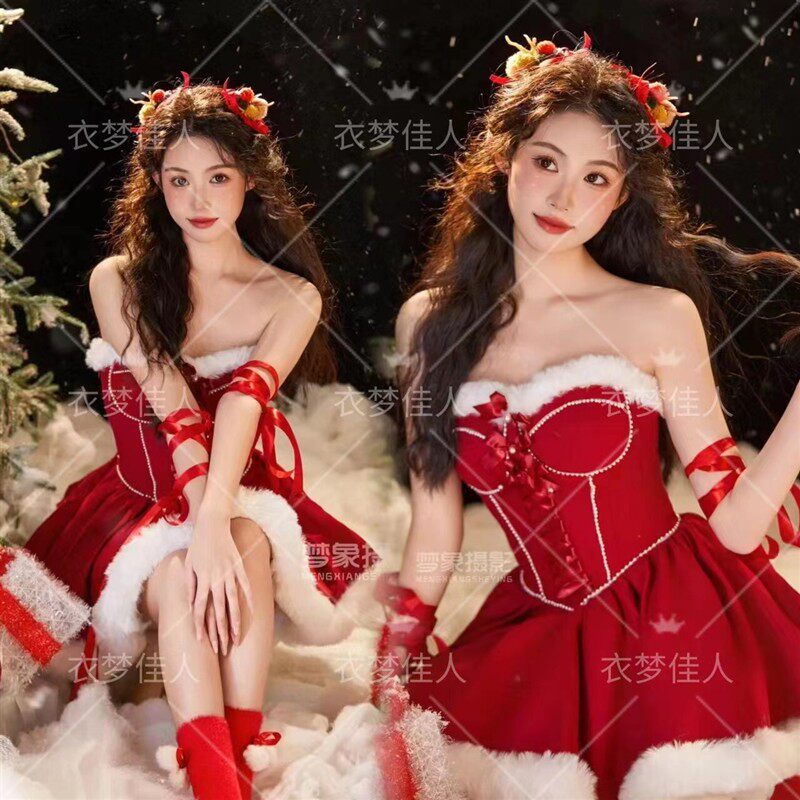 📚 秋冬新款圣诞节主题拍照服装甜美芭比公主风新年写真艺术照连衣裙