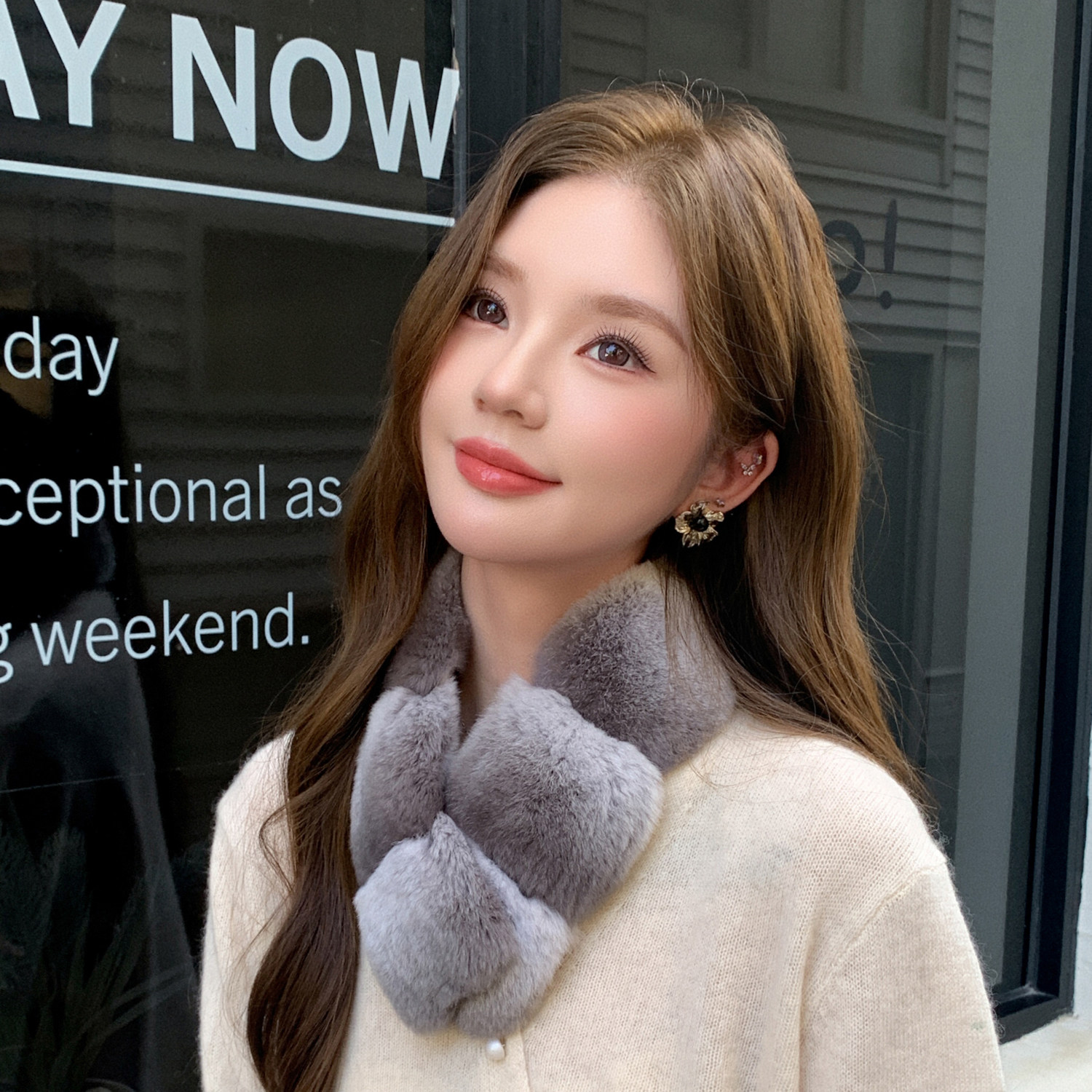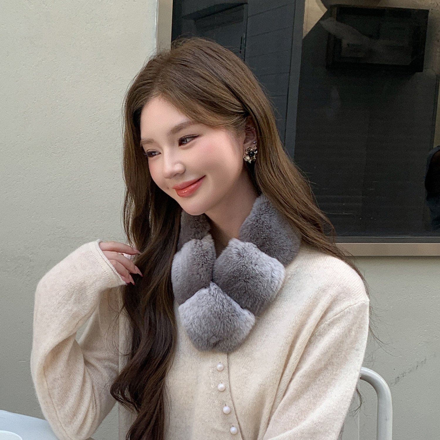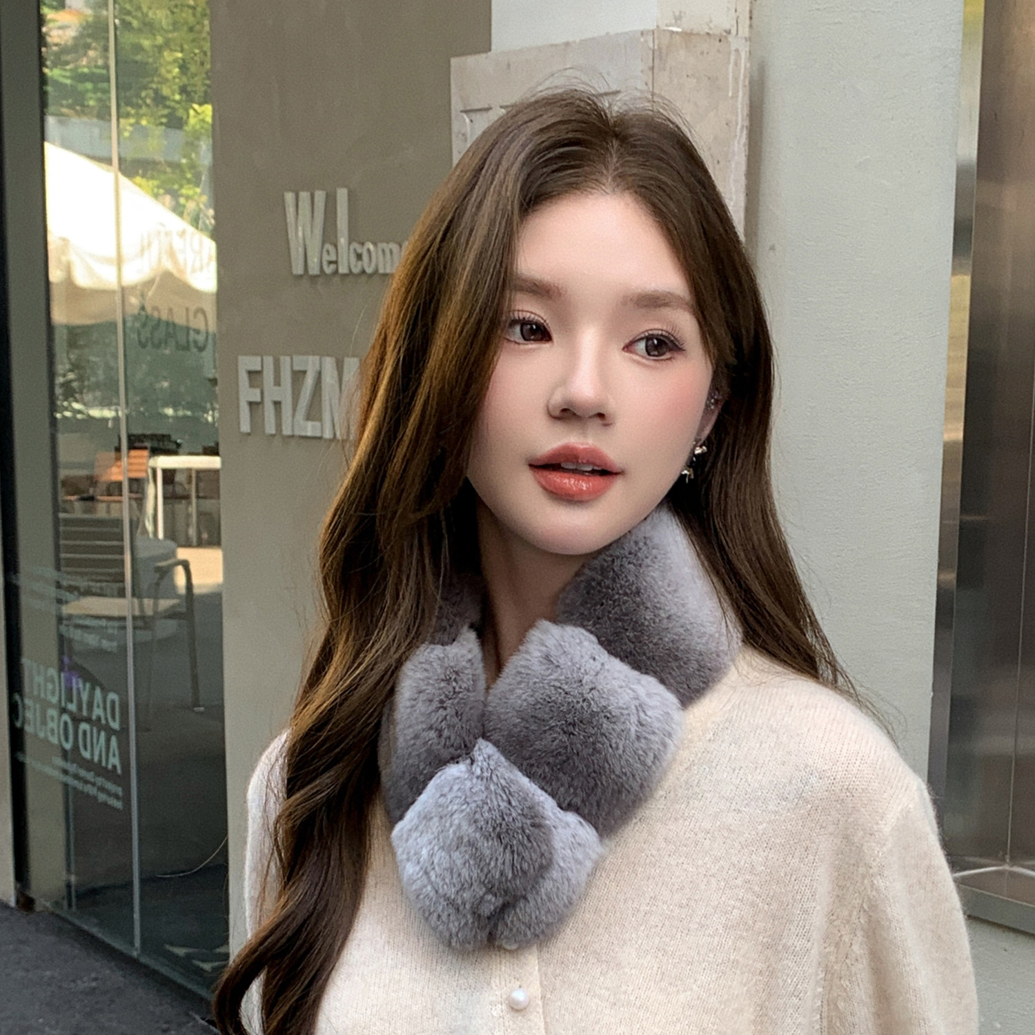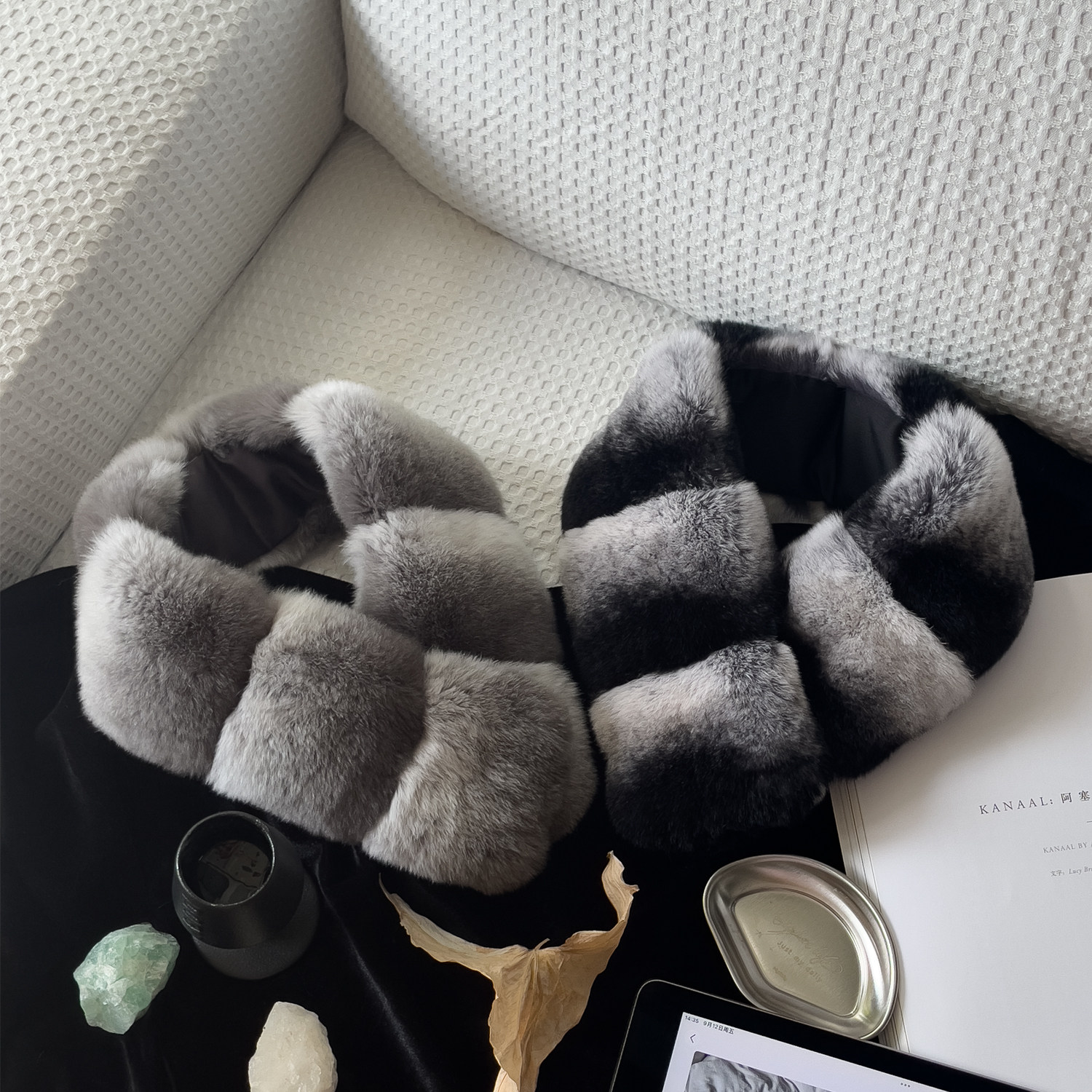 📚 黎宿新款獭兔毛围脖女冬季保暖百搭仿龙猫青紫蓝皮草围巾真毛领子