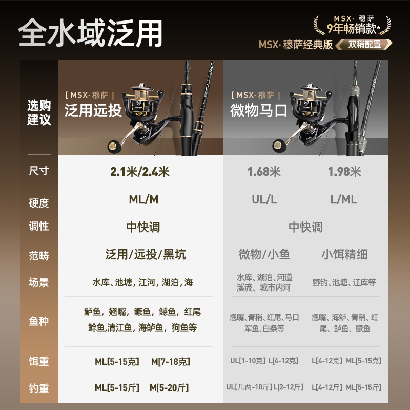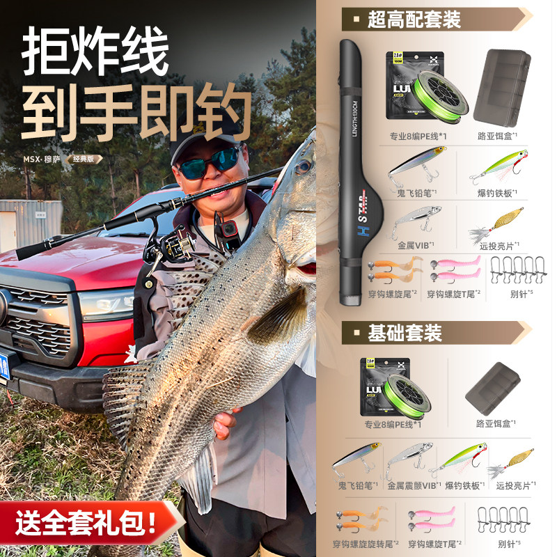 📚 哈斯达穆萨直柄路亚竿套装纺车轮远投鱼竿碳素抛竿新手路亚竿全套