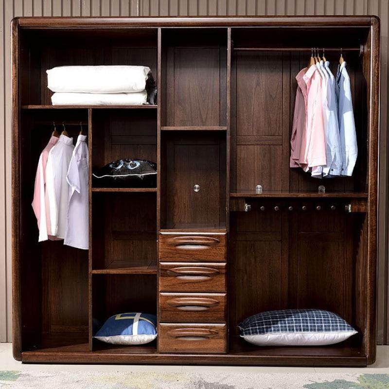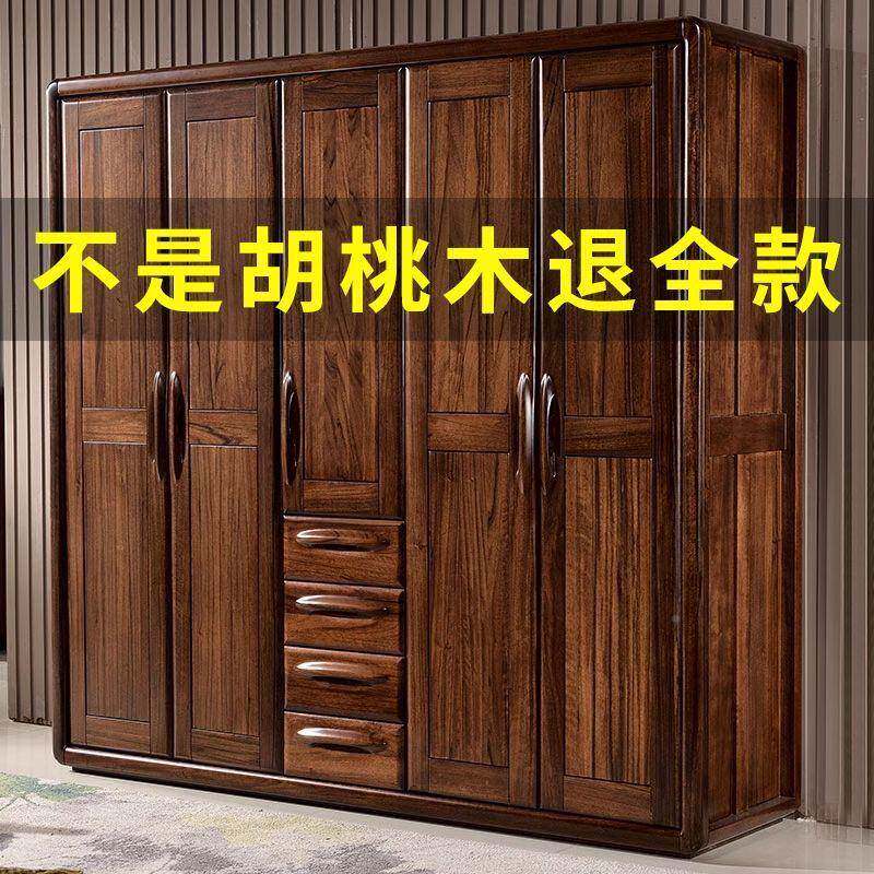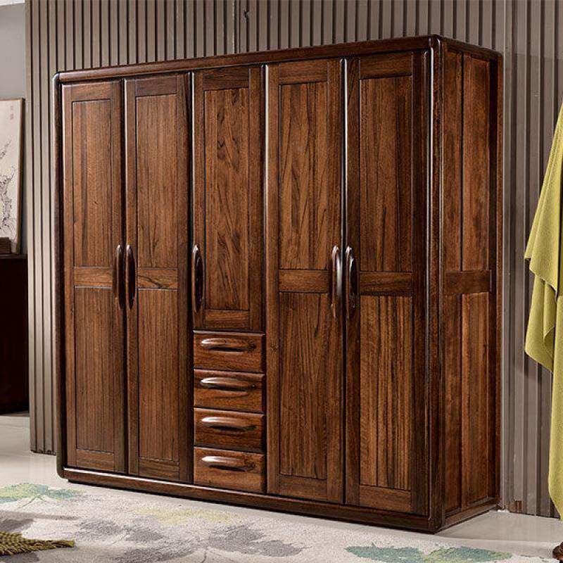 📚 木PUQ全实大衣柜黑木胡桃中式原三四五门家用储物柜对开门木卧室