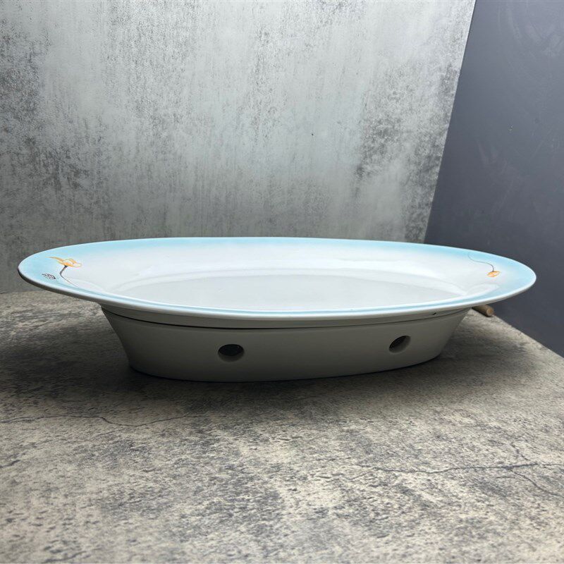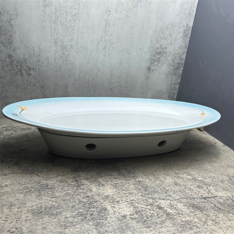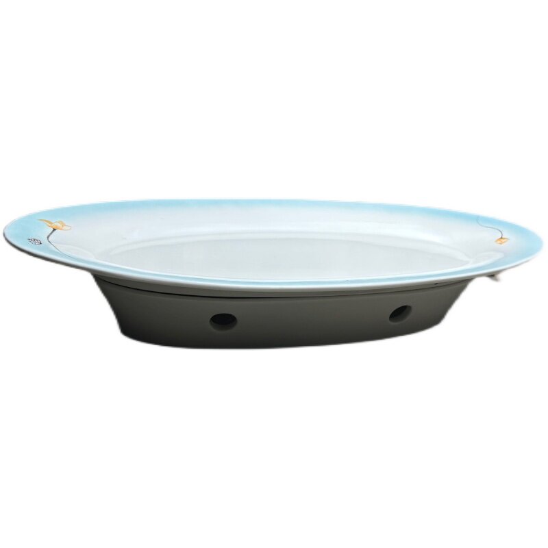 📚 鱼盘蜡烛加热餐具底座家用蒸鱼盘子大号饭店陶瓷鱼炉保温酒店鱼盆