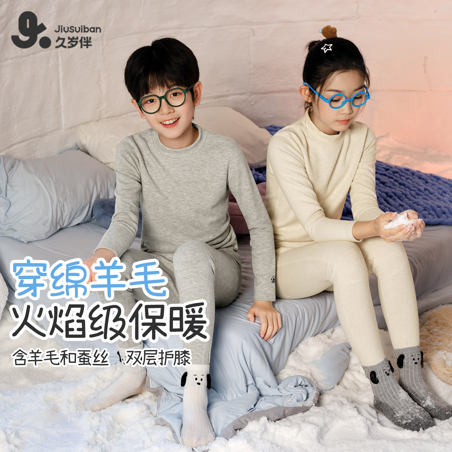 📚 久岁伴儿童保暖内衣套装男童秋衣秋裤蚕丝羊毛双层护膝女童秋冬季