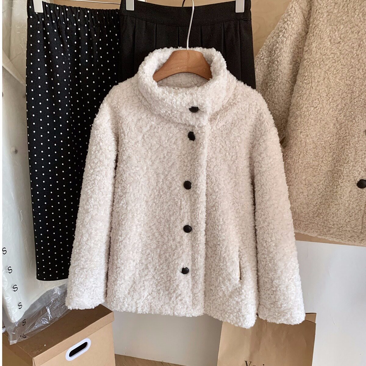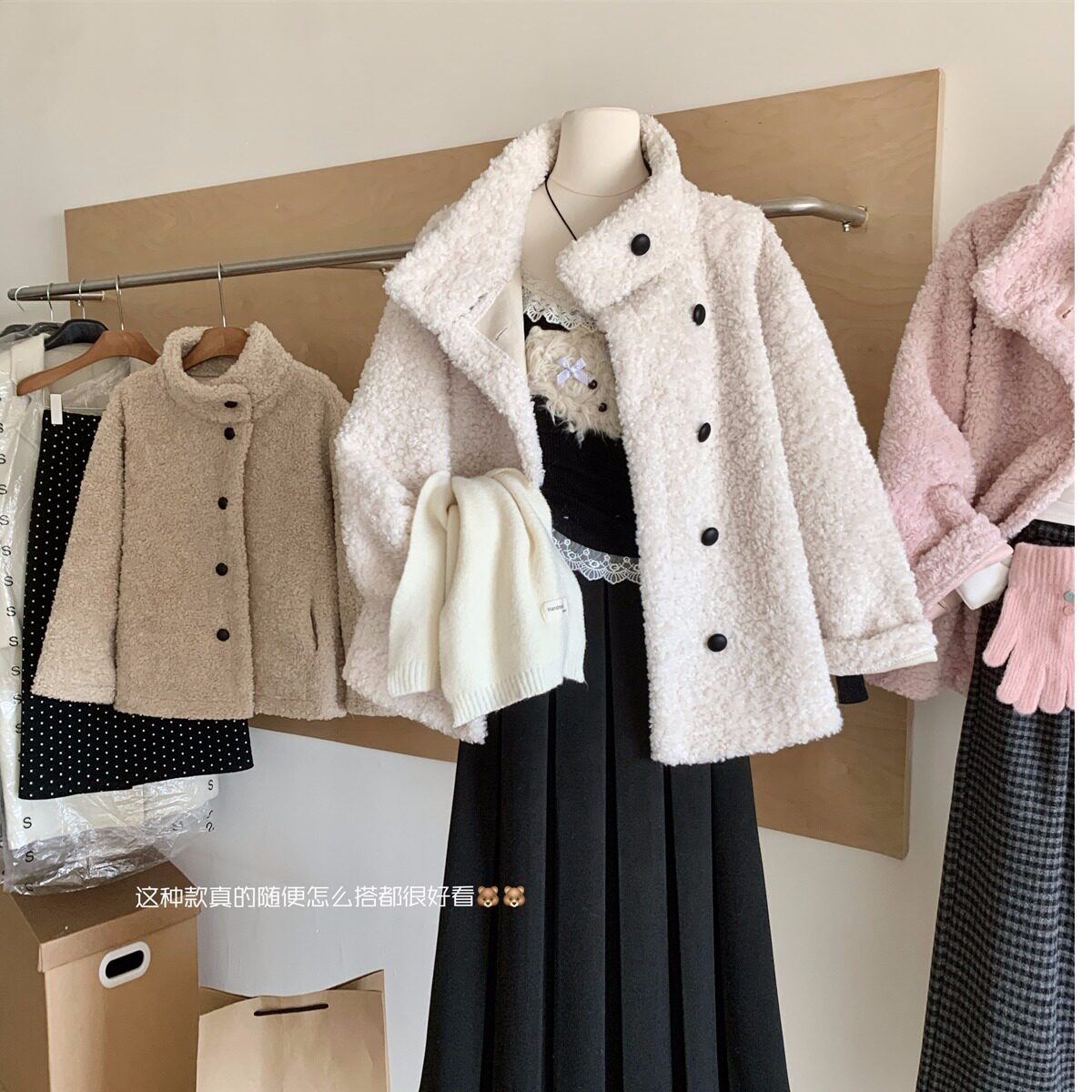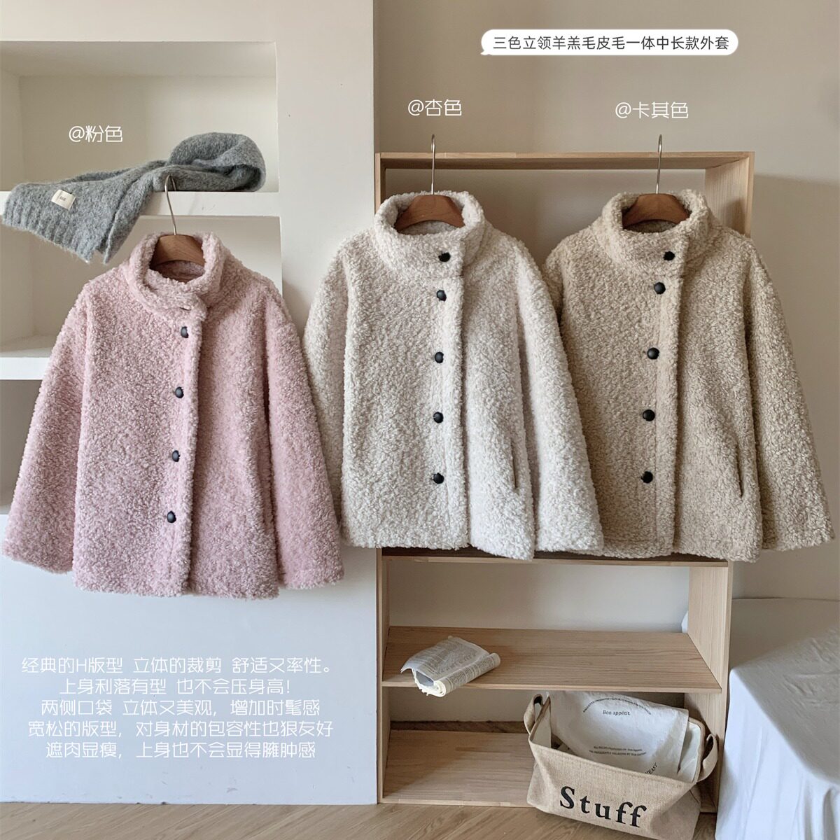 📚 150小个子韩版立领羊羔毛皮毛一体外套2024宽松加厚毛毛大衣女xs