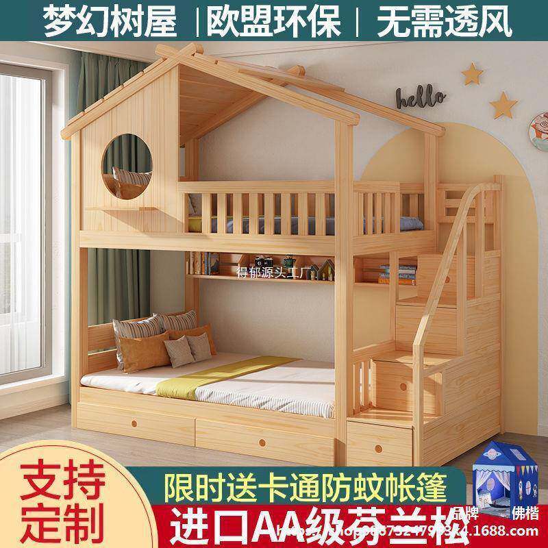 📚 童上下床铺双无品牌/层床男母孩全女实木高子床城低堡树屋滑梯孩
