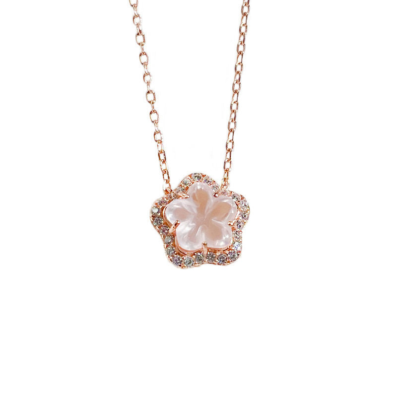 📚 天然粉水晶樱花S925纯银项链轻奢芙蓉石吊坠小众设计感花朵锁骨链