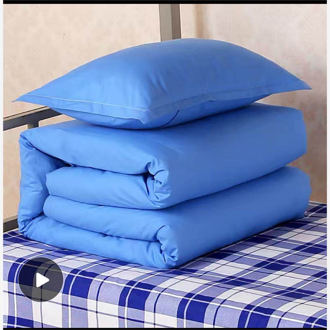 📚 学生宿舍上下床纯蓝色被罩枕套蓝白格床单,有纯棉和涤棉任意选择