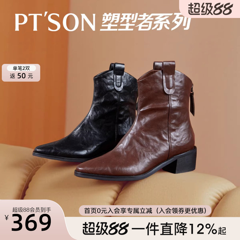 📚 沈月同款百田森棕色靴子女2025新款爆款真皮加绒短靴法式尖头短靴