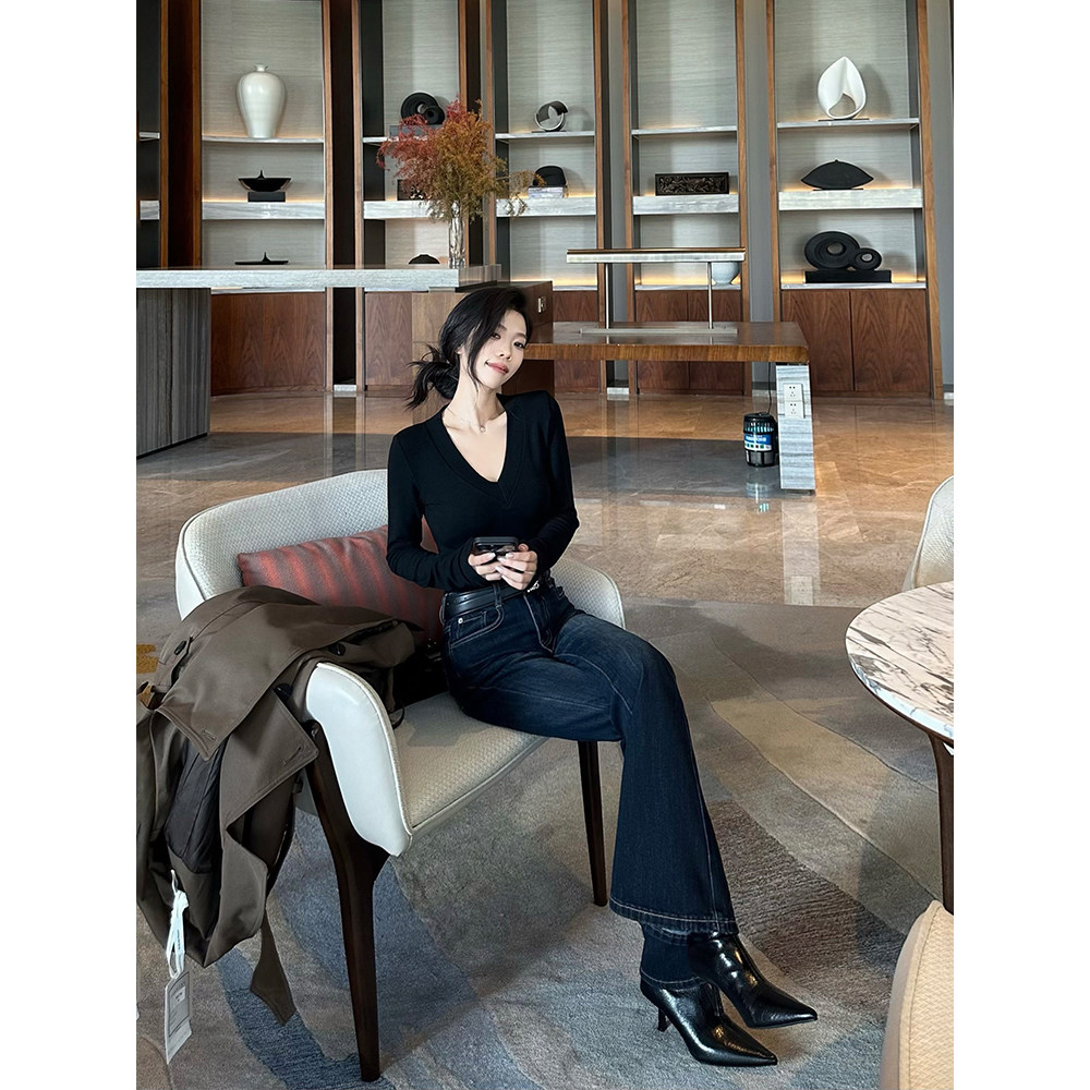 📚 王家有鱼时尚微喇裤2025新款蓝灰色百搭不贴腿显瘦牛仔裤子女长裤