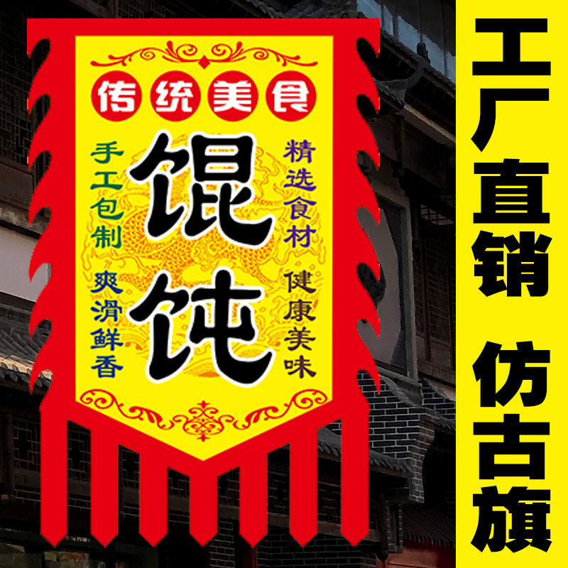 📚 【馄饨】仿古旗小摊旗子彩旗定做复古招牌广告旗定制制作幌子订做