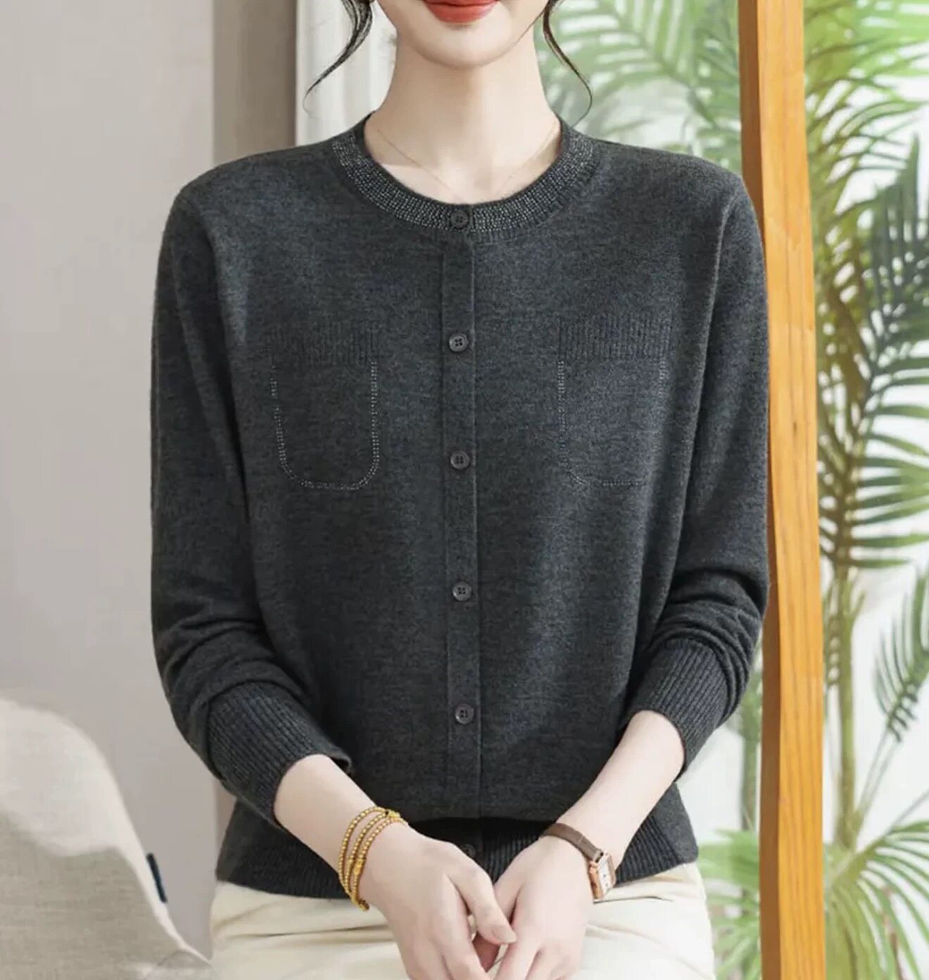 📚 妈妈春装洋气针织小衫上衣2026新款中老年人女春秋显瘦薄款打底衫