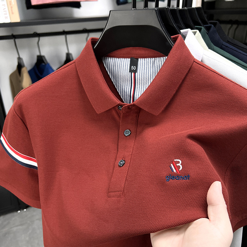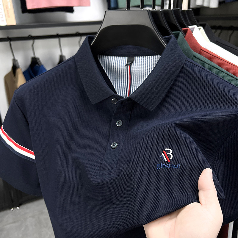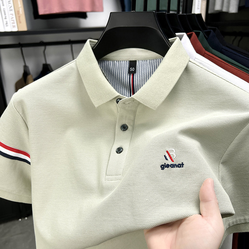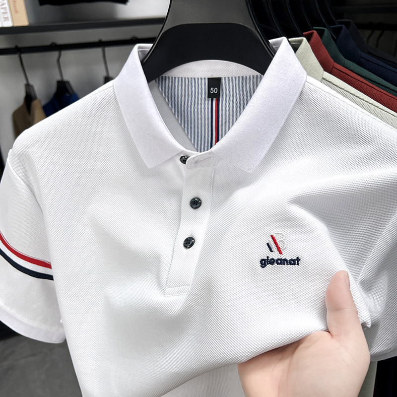 📚 2025男士夏季新款冰丝短袖T恤中年爸爸装翻有带领polo衫刺绣上衣