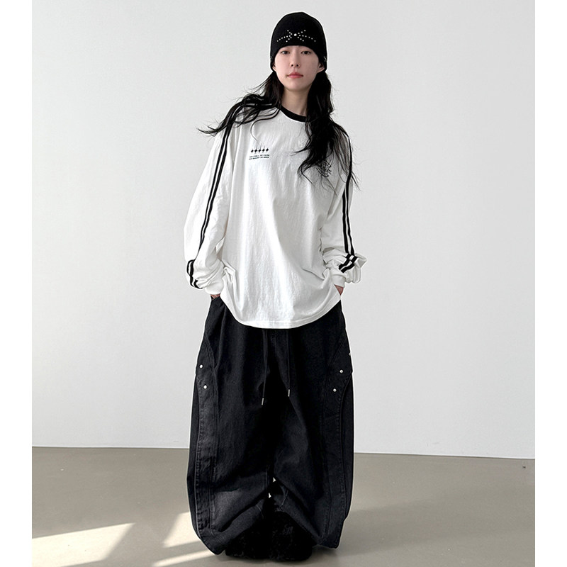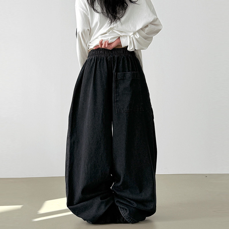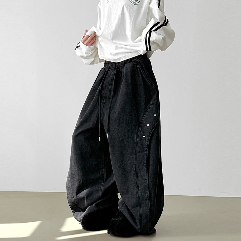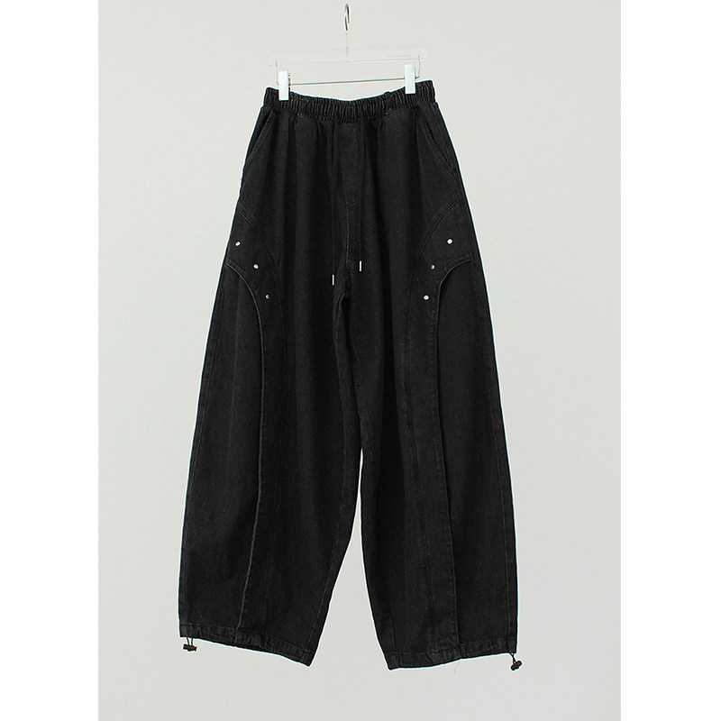 📚 韩代25 stud curved denim balloon banding pants(unisex)牛仔裤