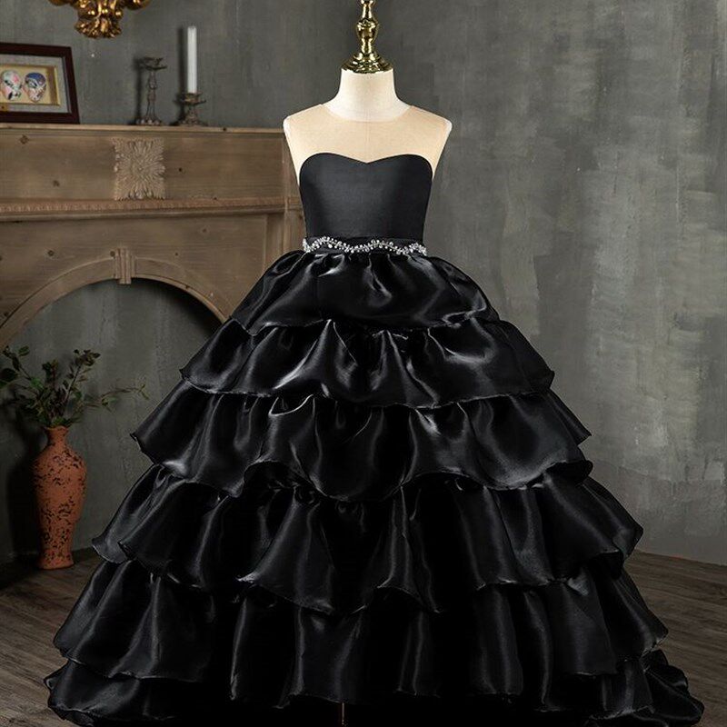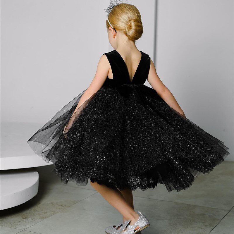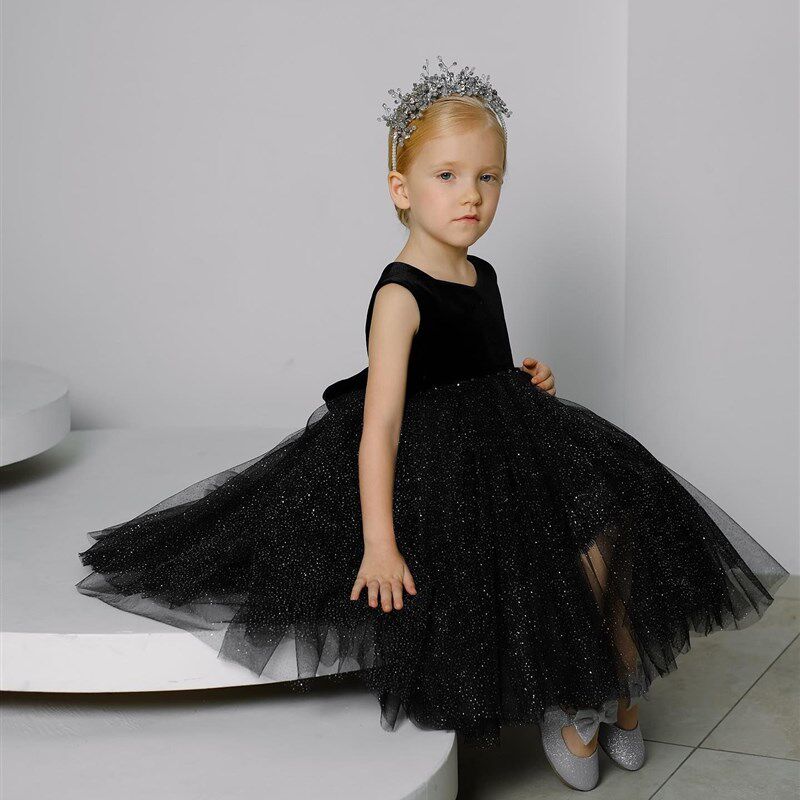 📚 女童黑色走秀晚礼服拖尾儿童高端公主裙钢琴演出小主持人影楼拍照