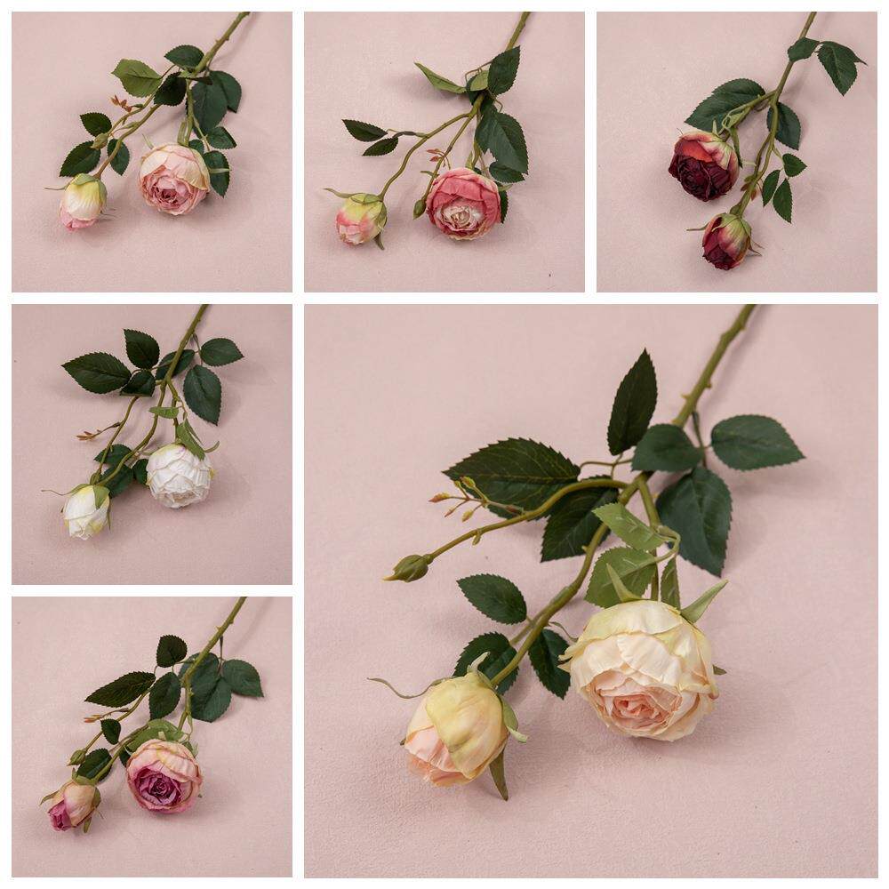 📚 仿真花琇环双头焦边玫瑰枝INS风家居装饰婚庆假花厂家MW52001定制