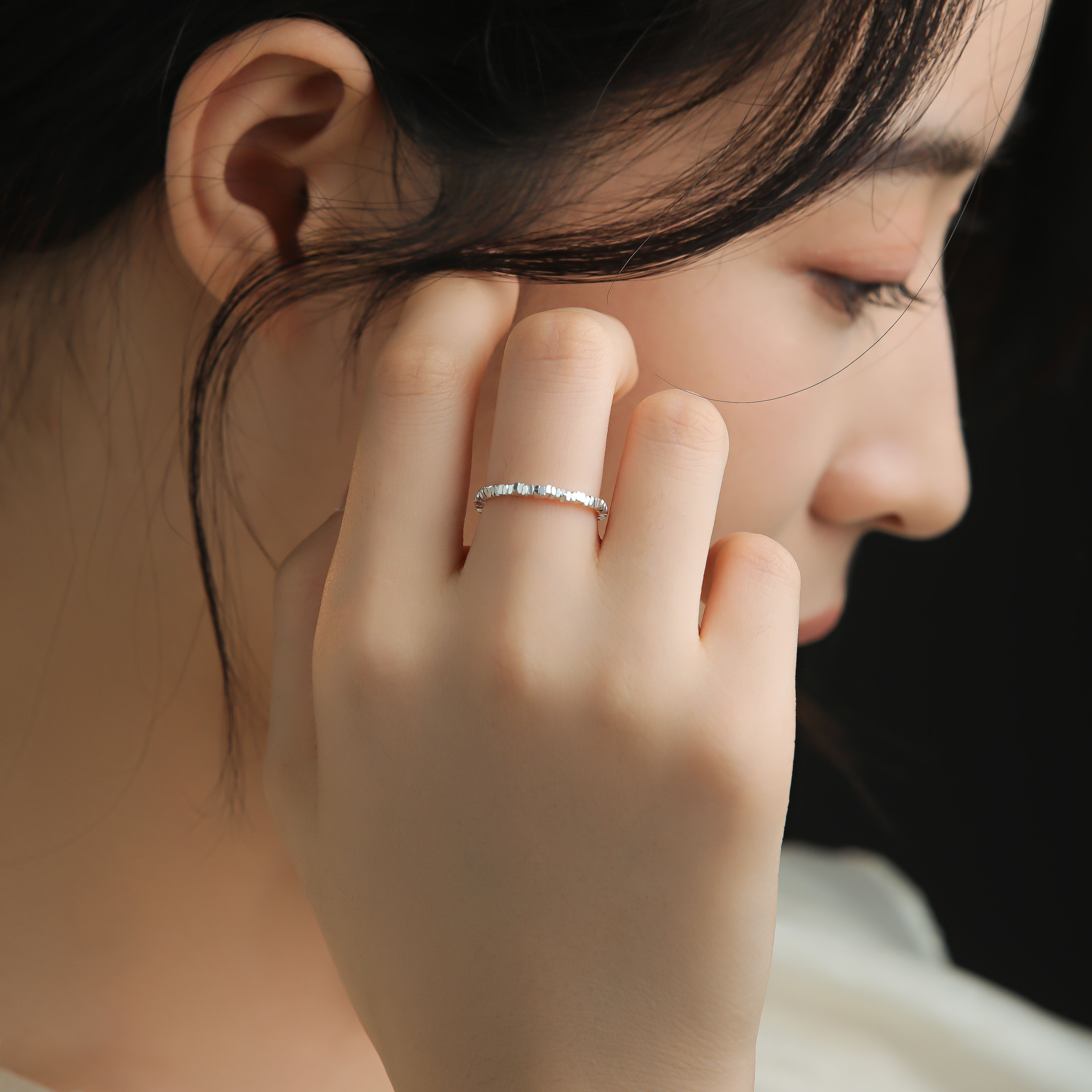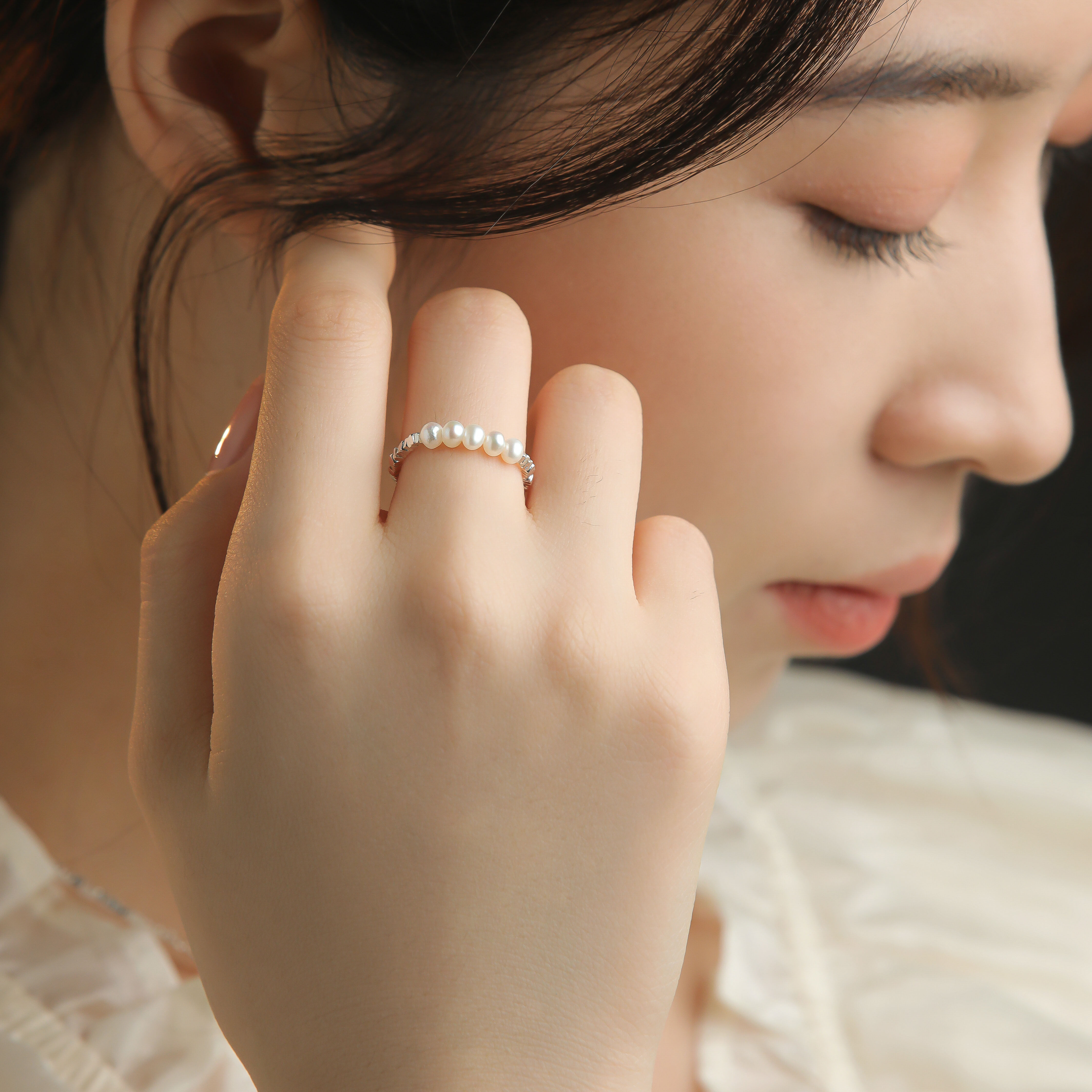 📚 亮闪碎银子天然淡水珍珠指环S925银弹力戒指民族风设计闺蜜礼物女