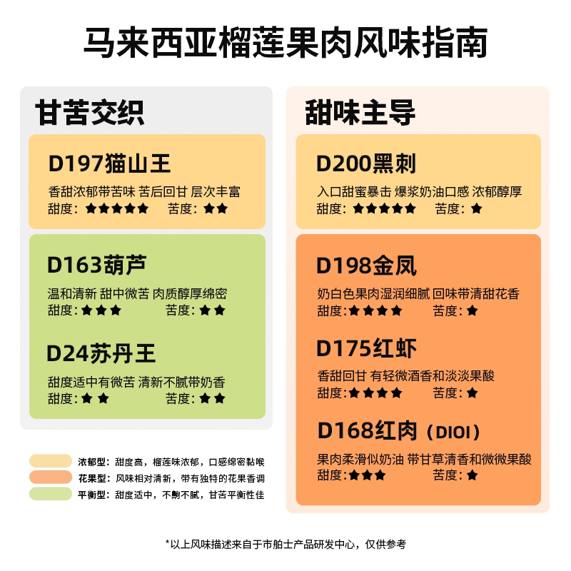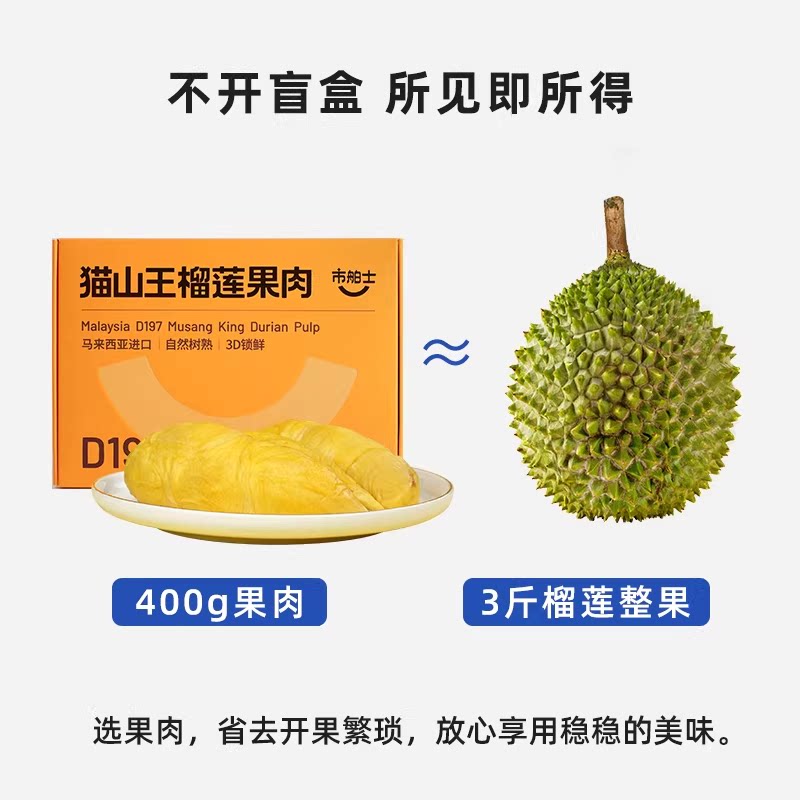📚 市舶士猫山王金凤当季新鲜榴莲果肉自然树熟马来西亚进口冷冻400g