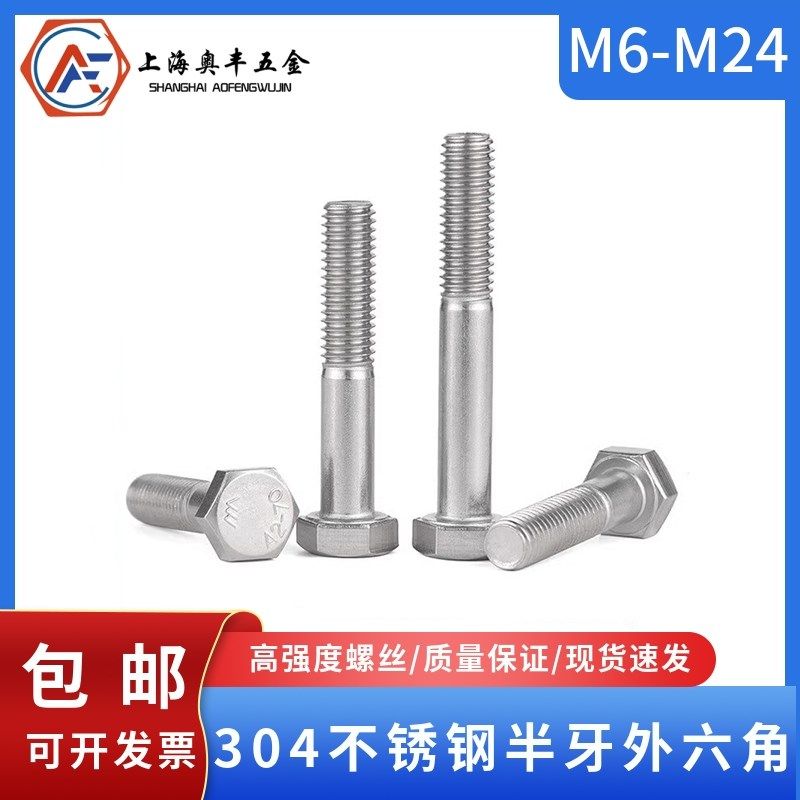 📚 速发04M锈钢半牙外六角螺丝DI半螺纹加长六角螺栓不6M8M10M12M24