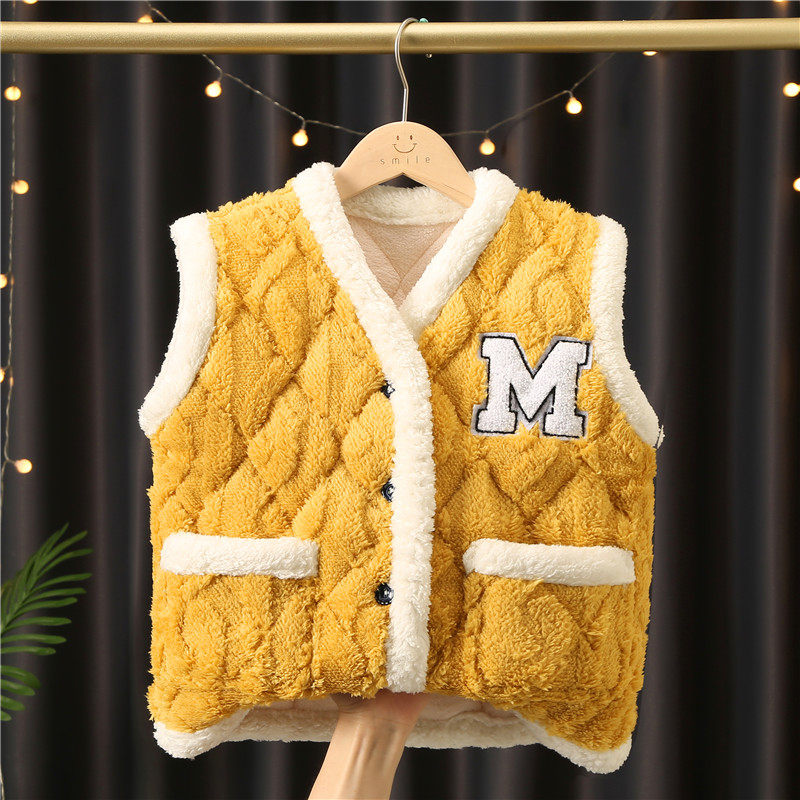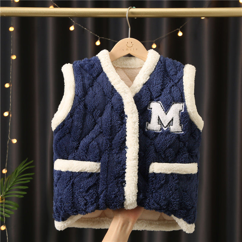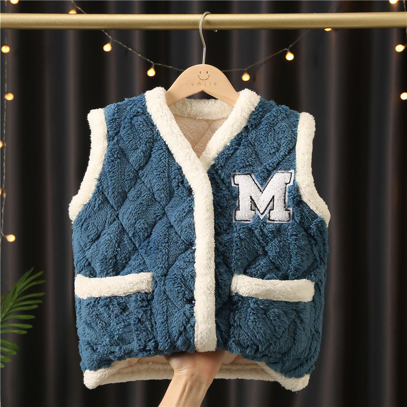 📚 三层夹棉加厚儿童马甲法兰绒秋冬季款坎肩男女中大童外穿马夹背心