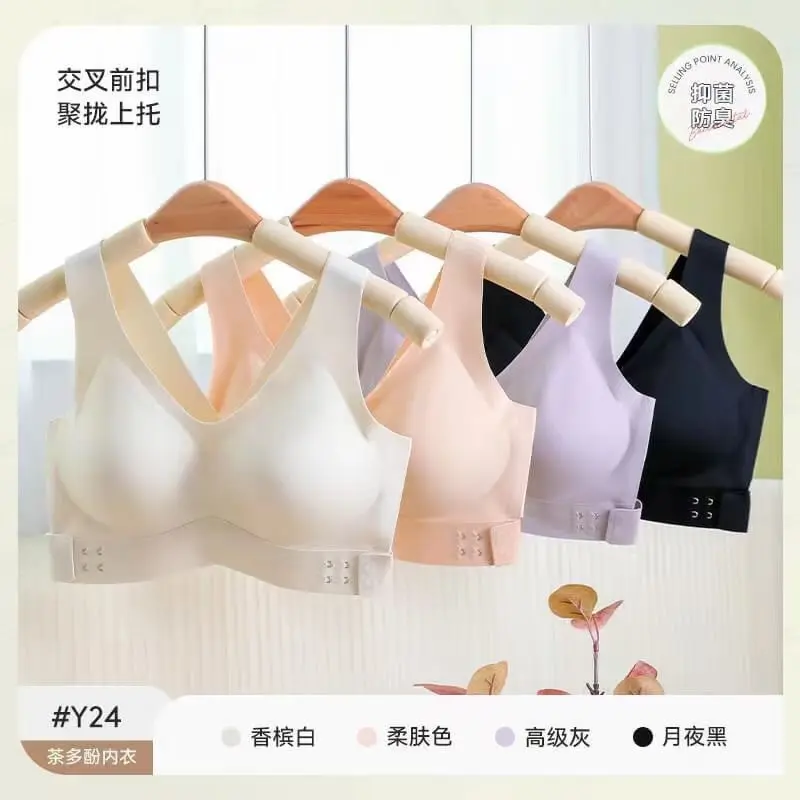 📚 性感交叉侧排扣无痕无钢圈内衣聚拢托胸美背提拉运动文胸加宽肩带