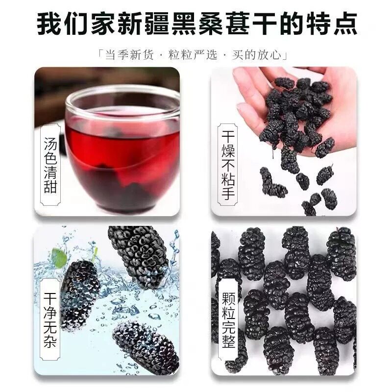 📚 黑野桑葚干5斤批发新疆桑果免即食无沙免洗整箱装泡水茶生桑椹子