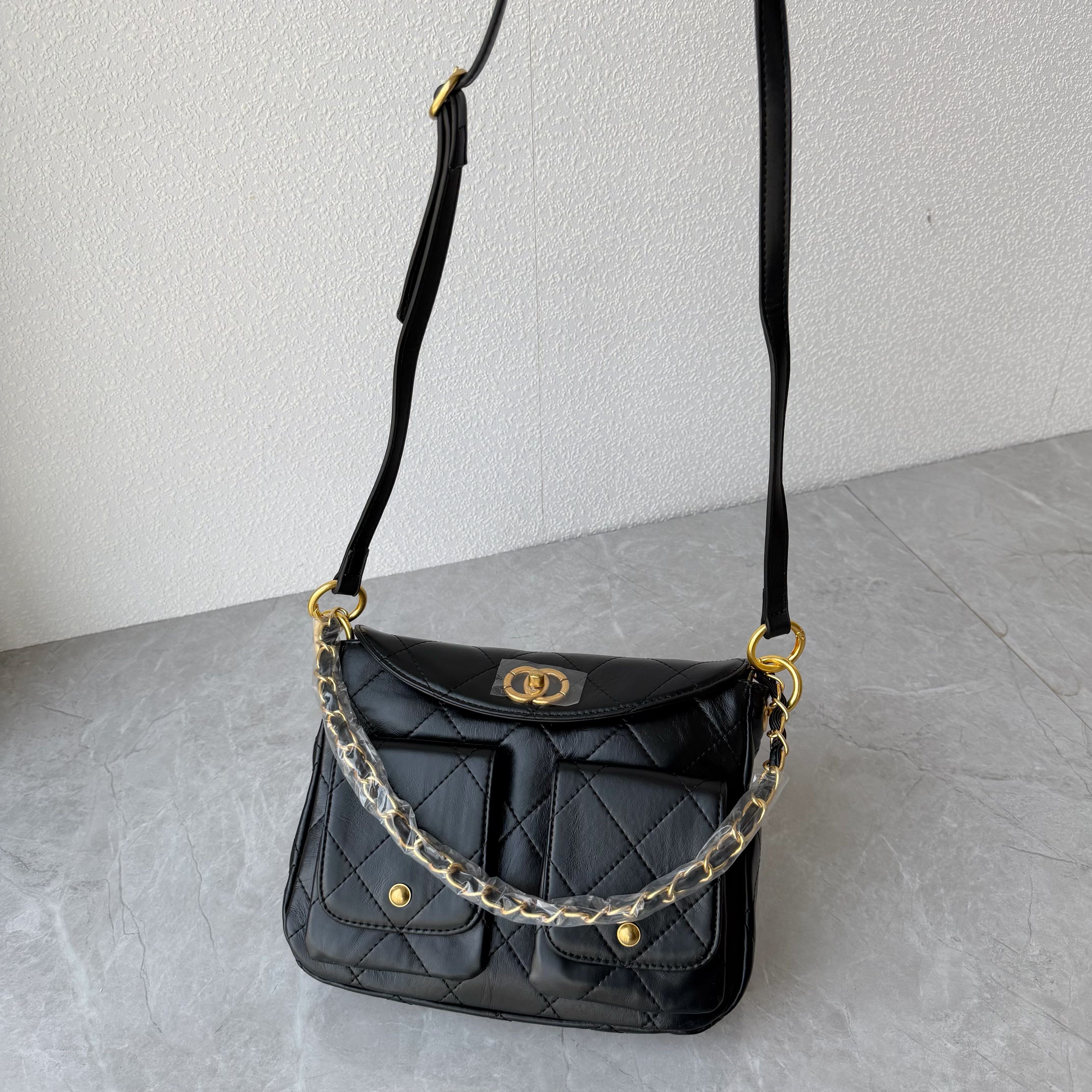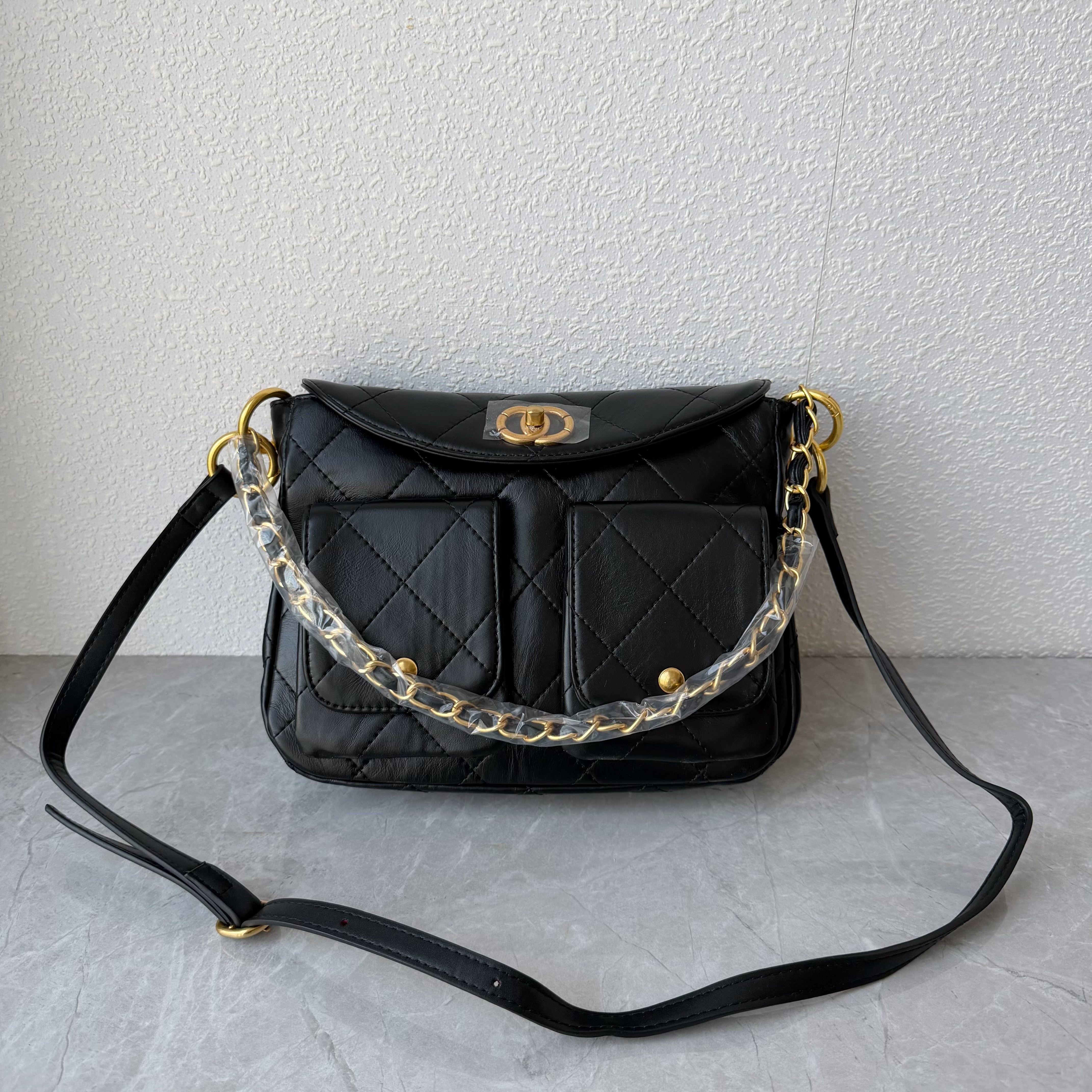 📚 捡漏头层牛皮小香风菱格邮差包真皮高级质感单肩包百搭链条斜跨包