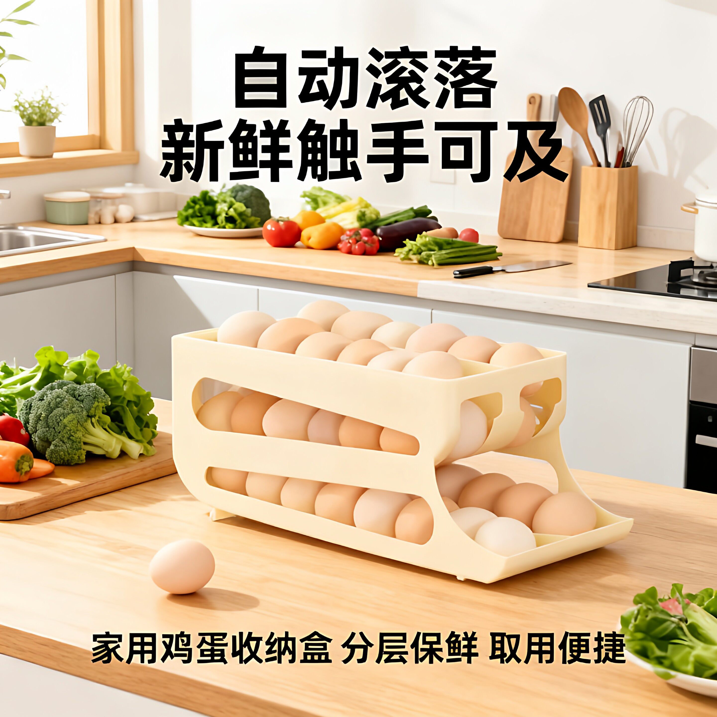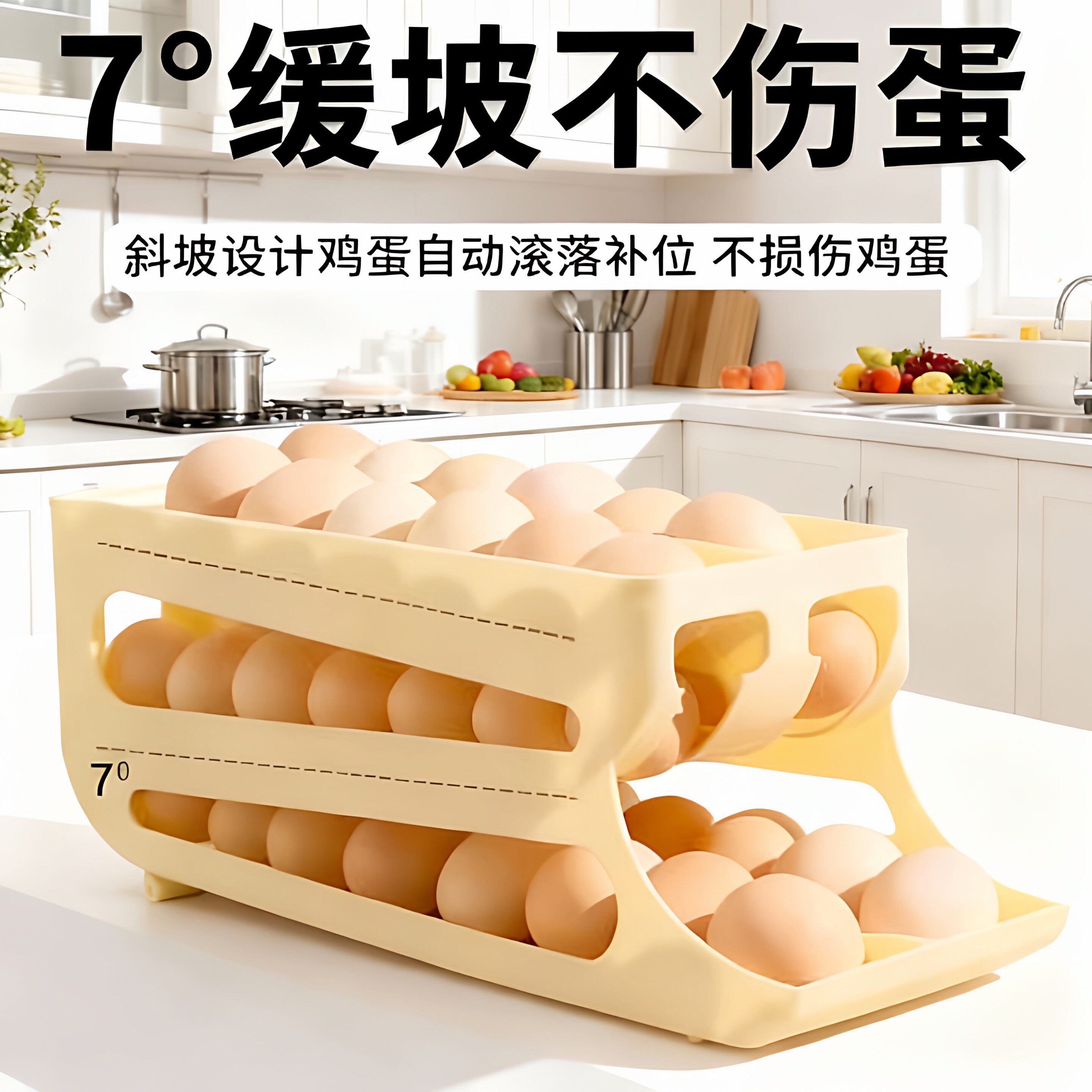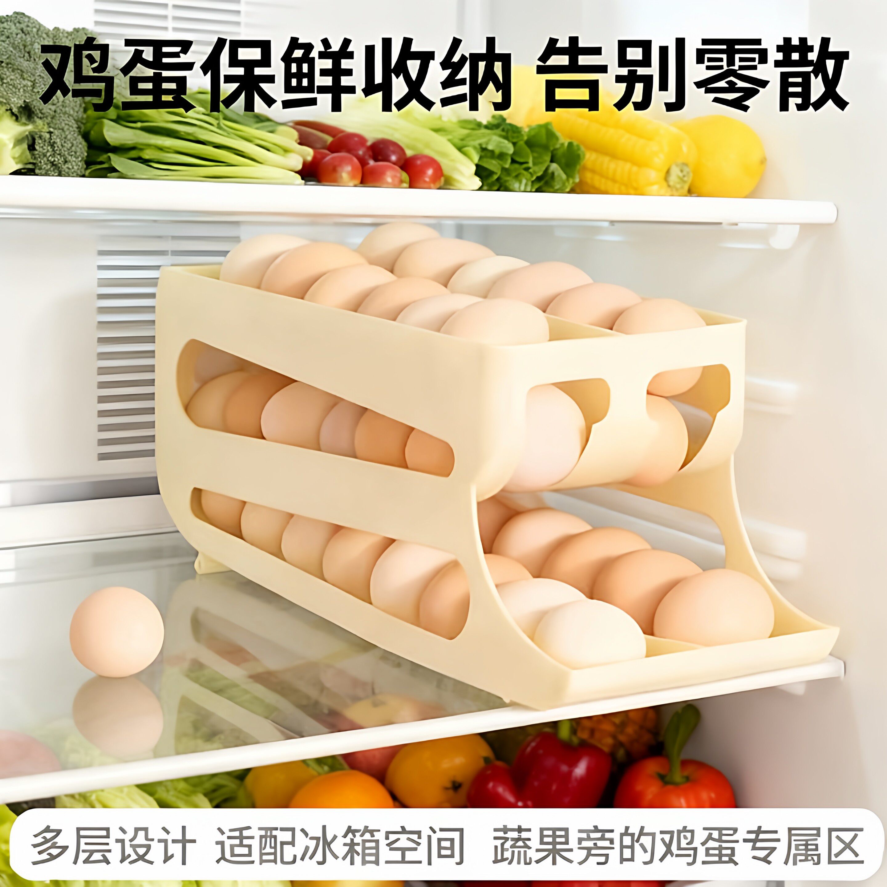📚 滚动鸡蛋收纳盒厨房多层斜口滚蛋器冰箱侧门鸡蛋托适用保鲜盒
