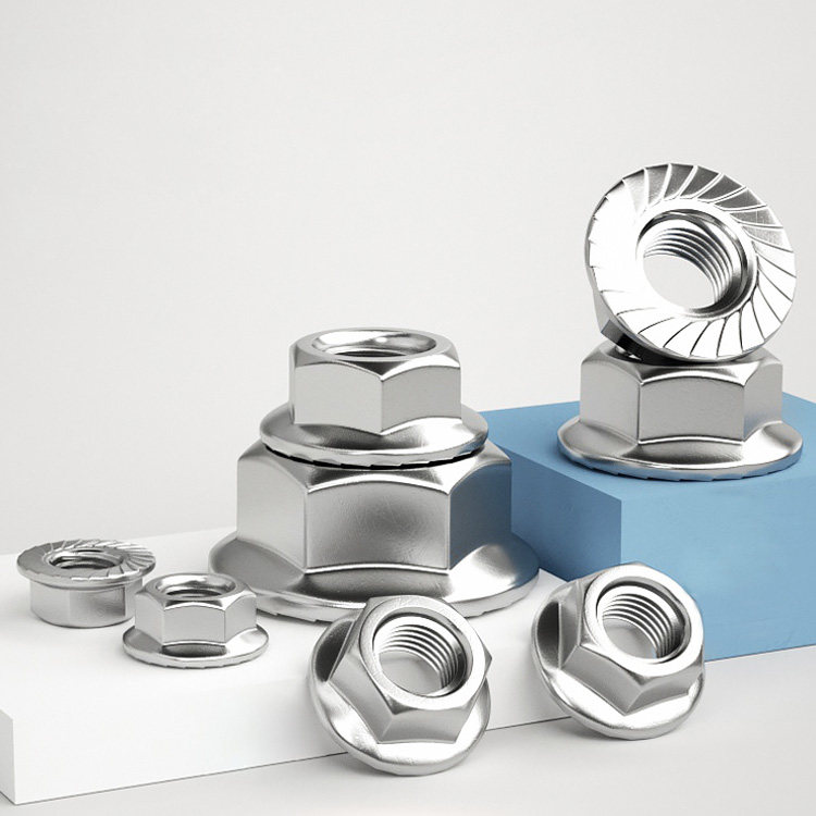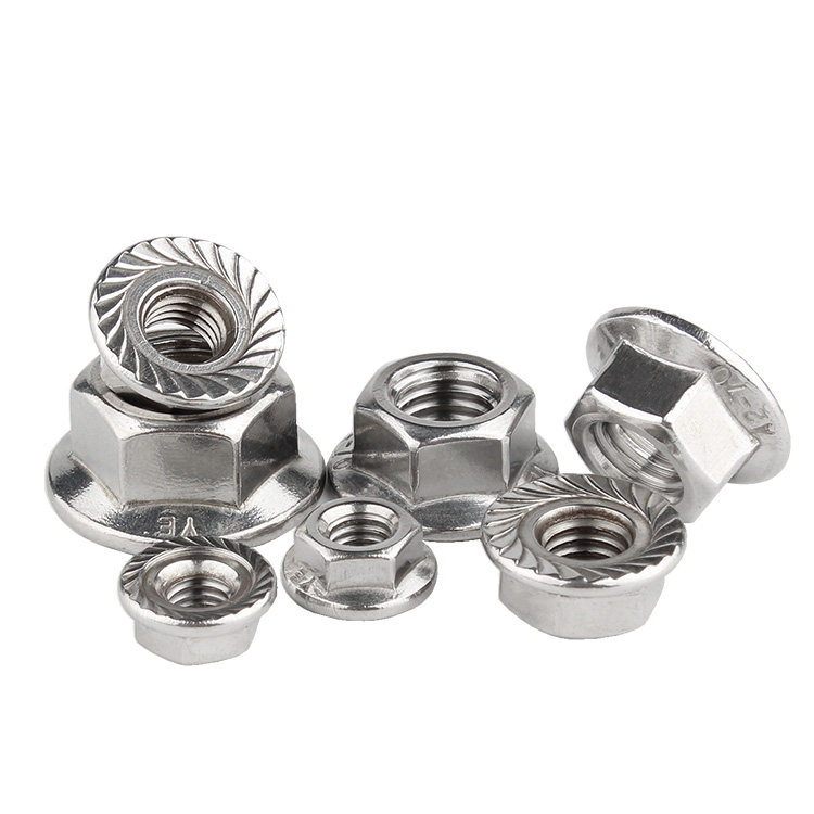 📚 304不锈钢法兰螺母316防滑锁紧六角反牙带齿DIN6923防滑防松螺帽