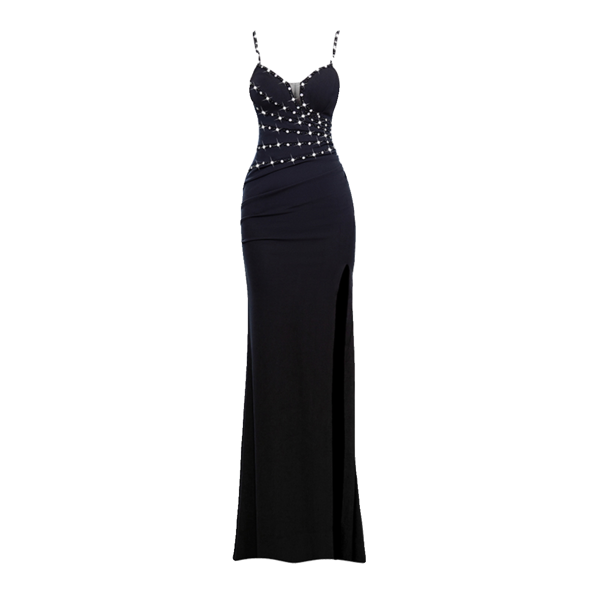 📚 性感吊带裙小众高端低胸气质名媛宴会镶钻无袖开叉包臀晚礼服长款
