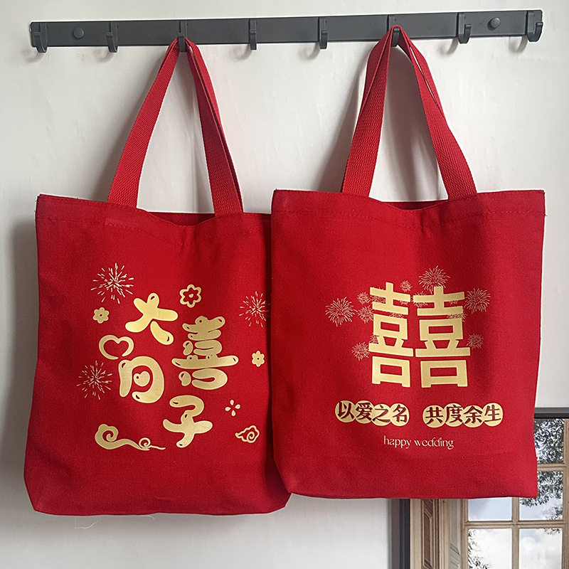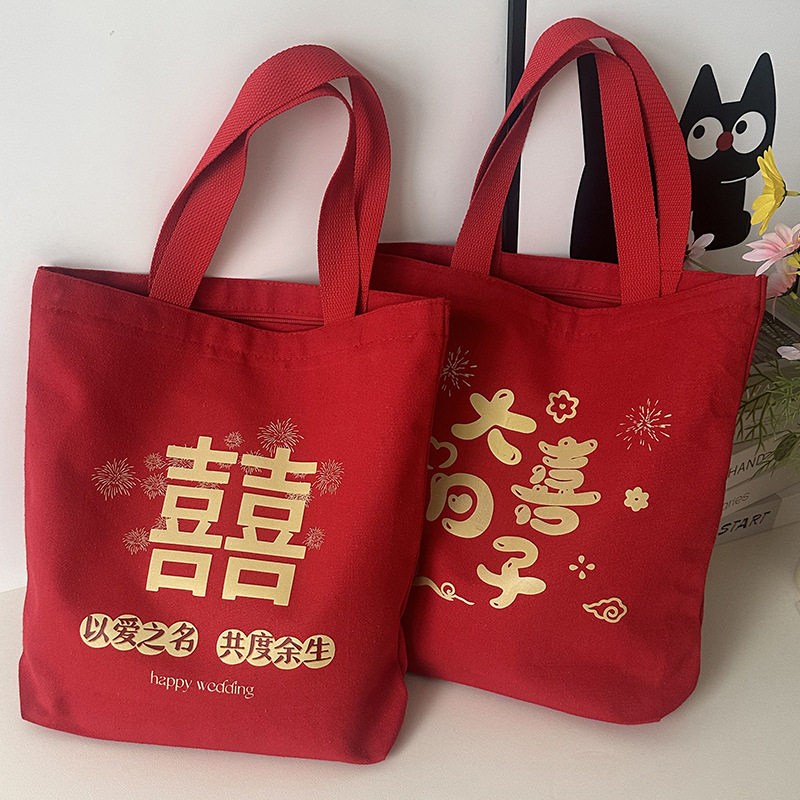 📚 中国风红色喜庆帆布包结婚手提布袋伴娘伴手礼袋喜糖盒婚庆收纳袋