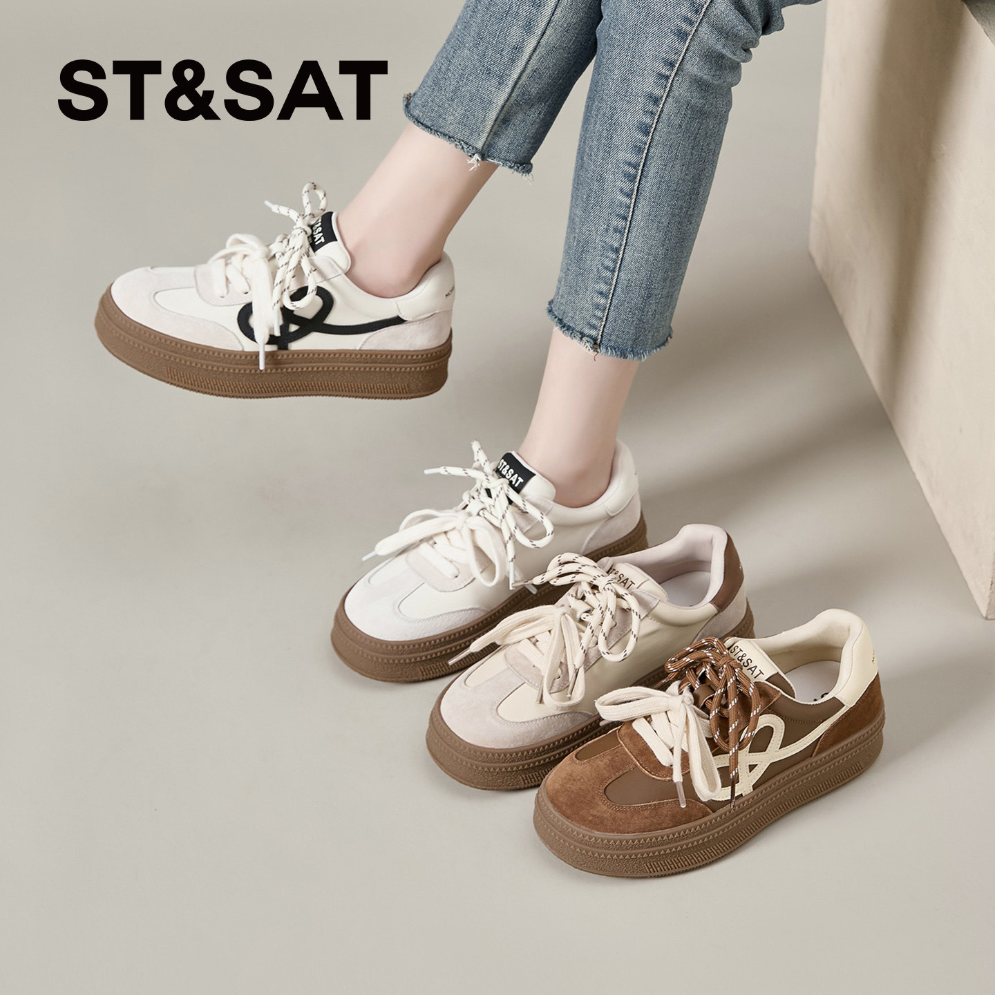 📚 星期六厚底德训鞋女款新款春季爆款复古休闲阿甘鞋运动休闲板鞋子