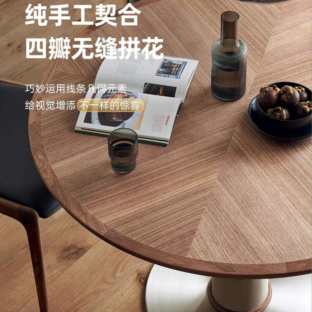 📚 Kena可纳/竹蜻蜓北美黑胡桃木实木圆餐桌北欧家用小户型饭桌圆桌