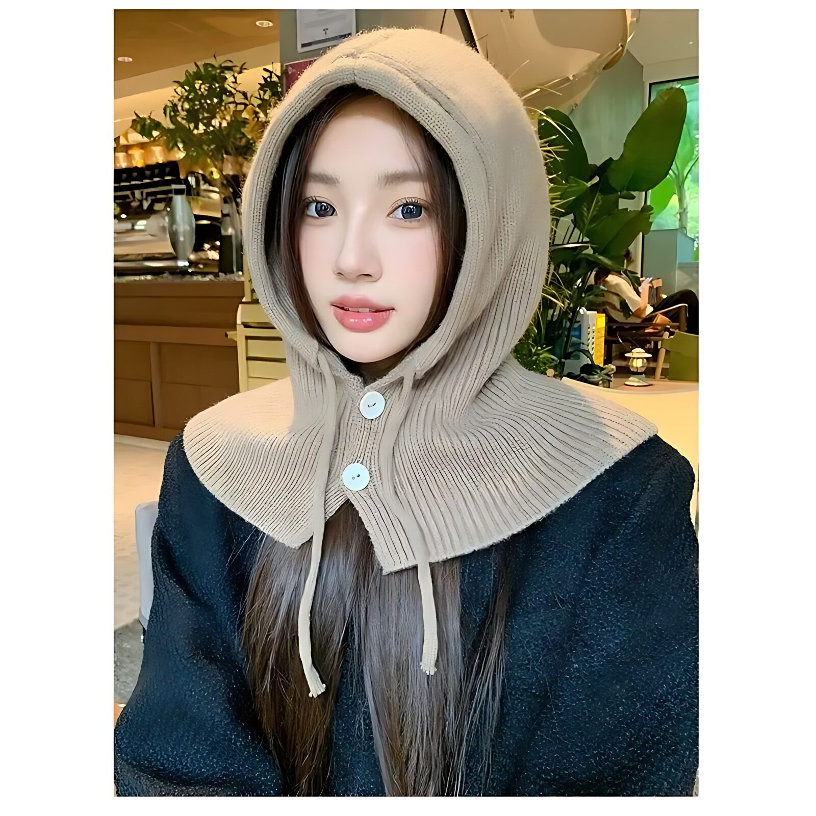 📚 假帽子领连帽披肩情侣毛线帽秋冬内搭羽绒服外搭衣领一体毛衣护颈