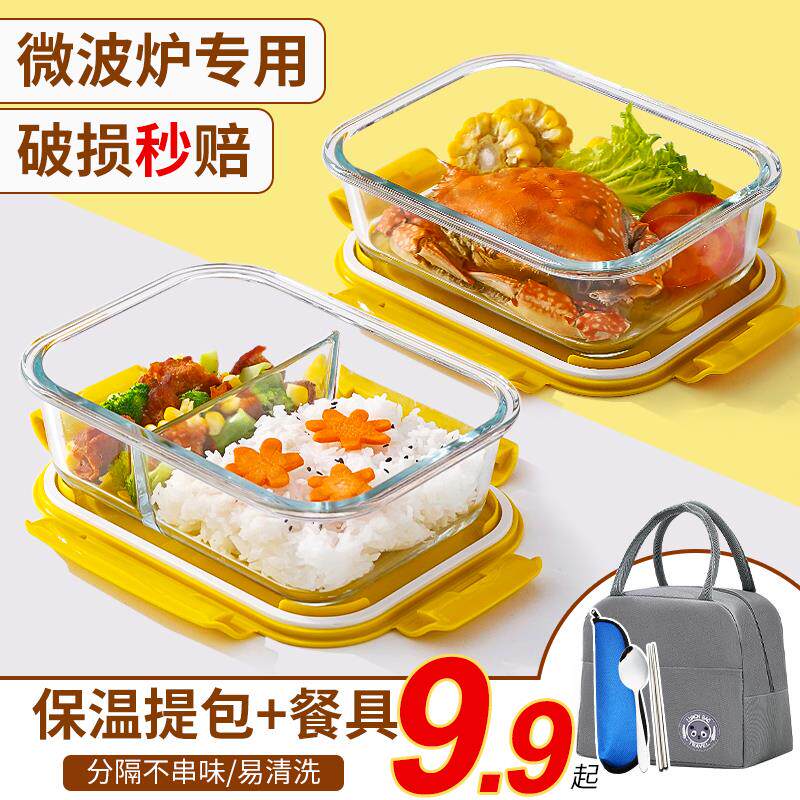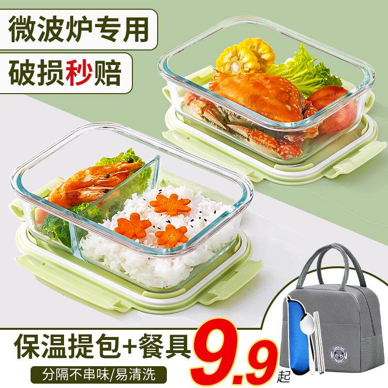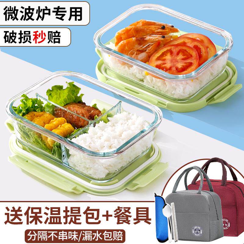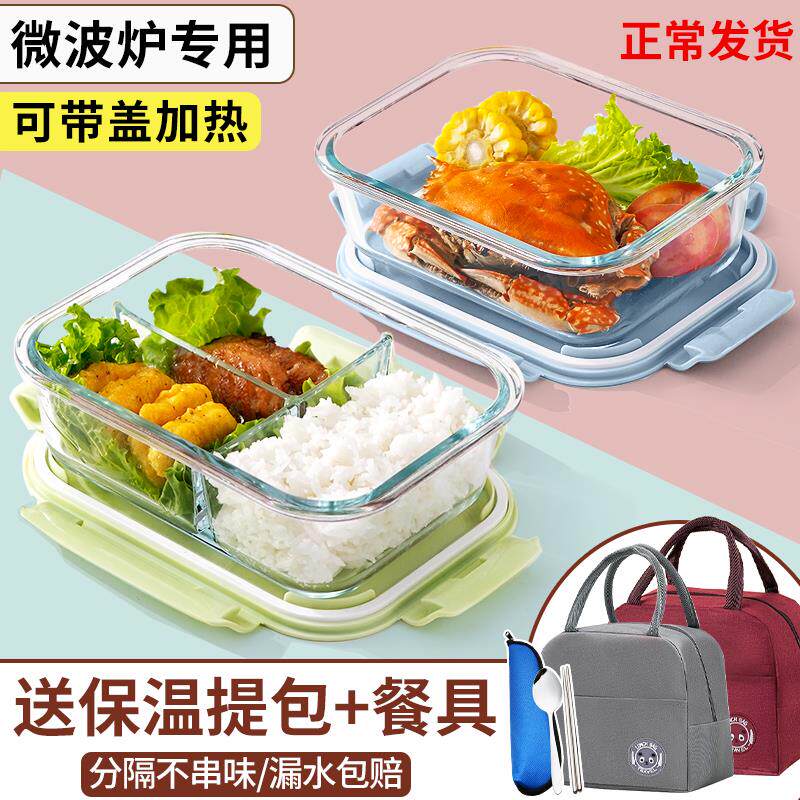 📚 饭盒玻璃保鲜盒微波炉加热专用上班族水果便当碗分隔餐盒密封盒子