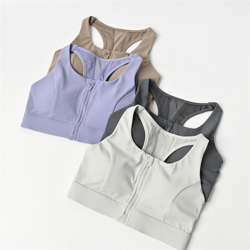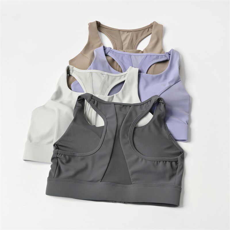 📚 中强度半固定杯 女士前拉链文胸内衣 健身速干聚拢防震无钢圈胸罩