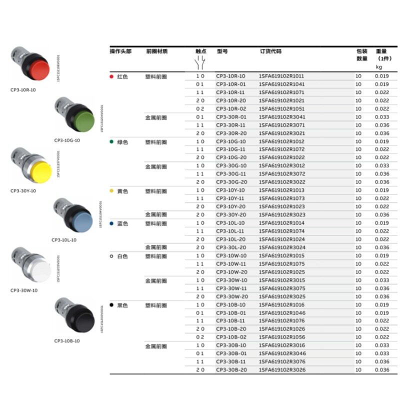 📚 ABB正品凸头按钮CP3-10G-10/11 CP3-10R-01/11 10W 10Y-10 1开1闭
