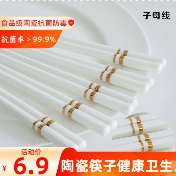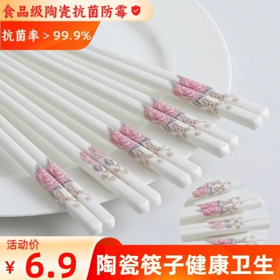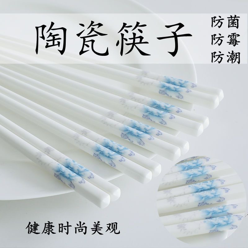 📚 景德镇瓷窑陶瓷筷子家用筷子健康不发霉环保陶瓷筷子易清洗可高温
