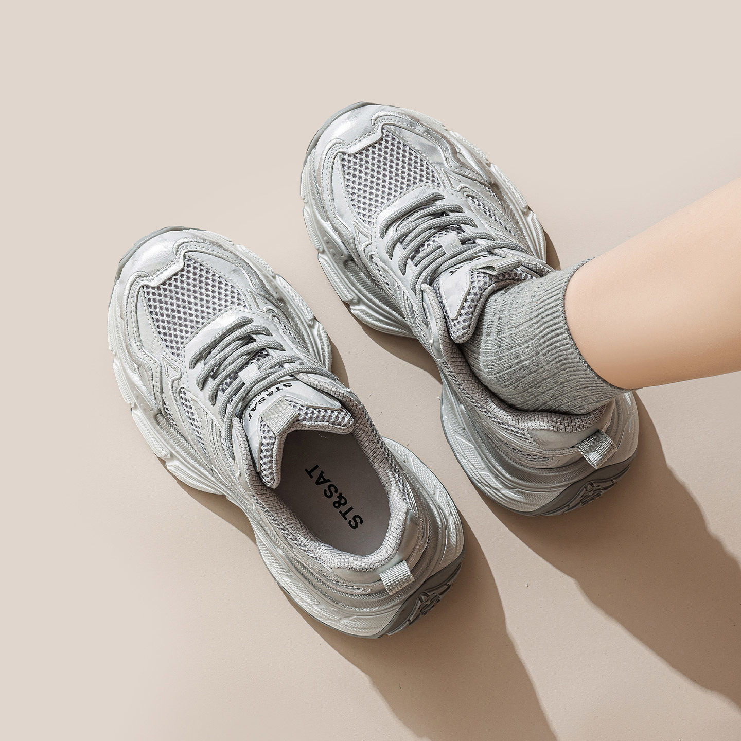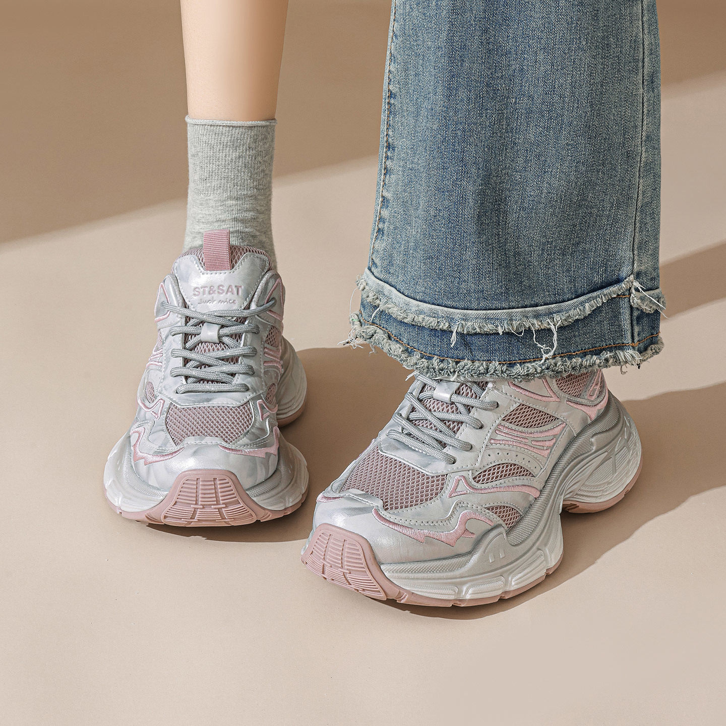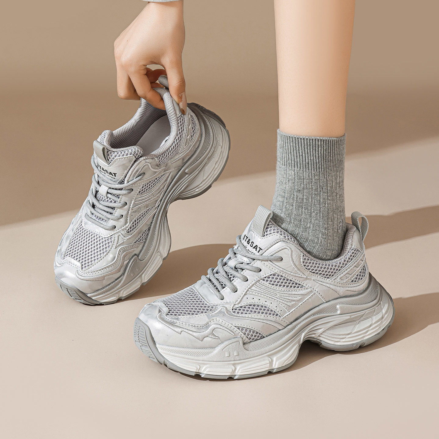 📚 St&Sat/星期六春秋网面透气老爹鞋厚底系带休闲单鞋女SSE1112C6H