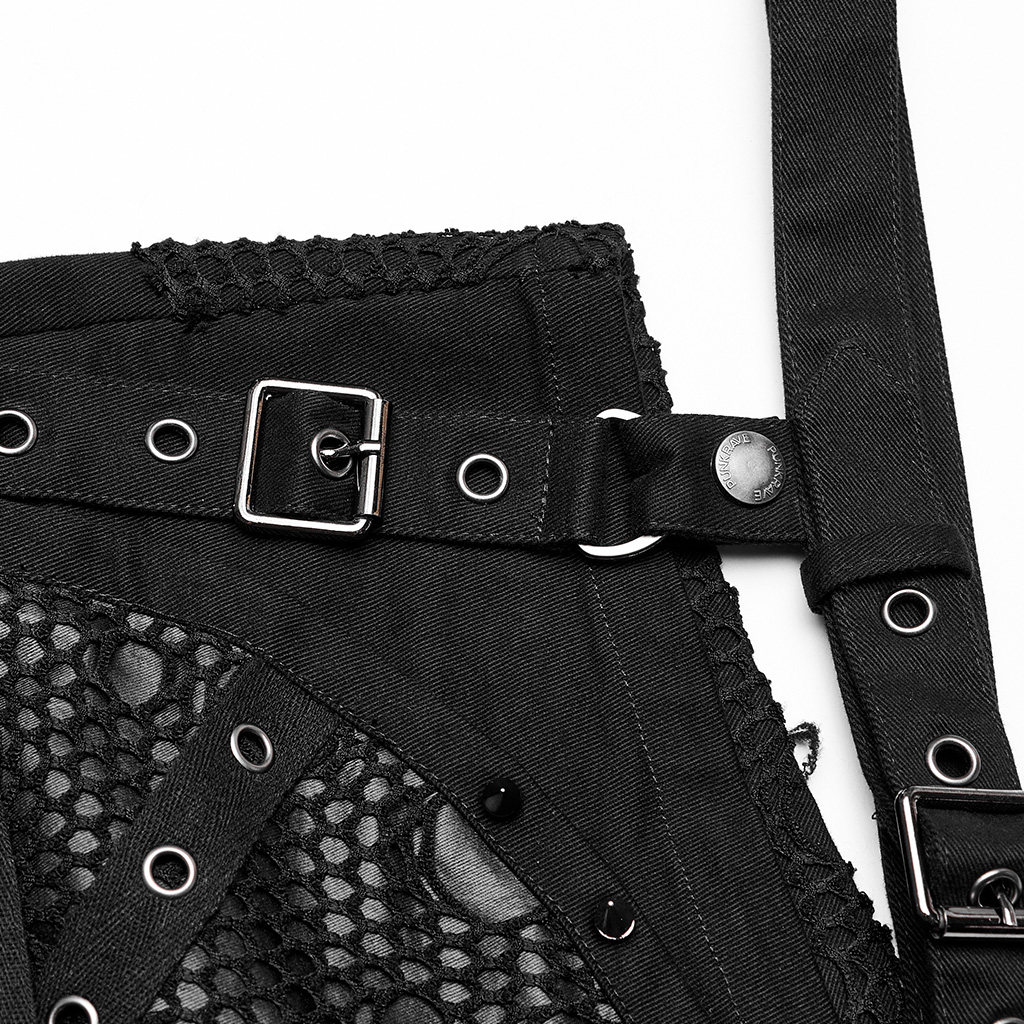 📚 PUNKRAVE朋克短裤夏新款女士热裤宽松中腰a字黑色破洞显瘦牛仔裤