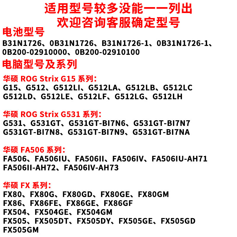 📚 适用华硕 ZX80GGE FX80G FX80GD FX80GMGE B31N1726 笔记本电池