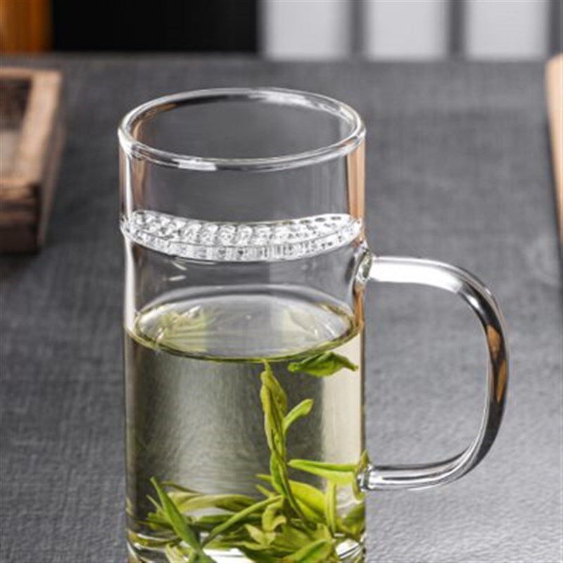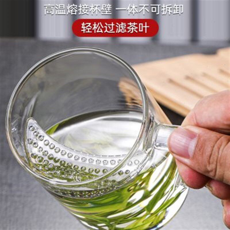 📚 月牙杯玻璃水杯大l容量茶水分离过滤泡茶杯子带把办公室耐热纯色