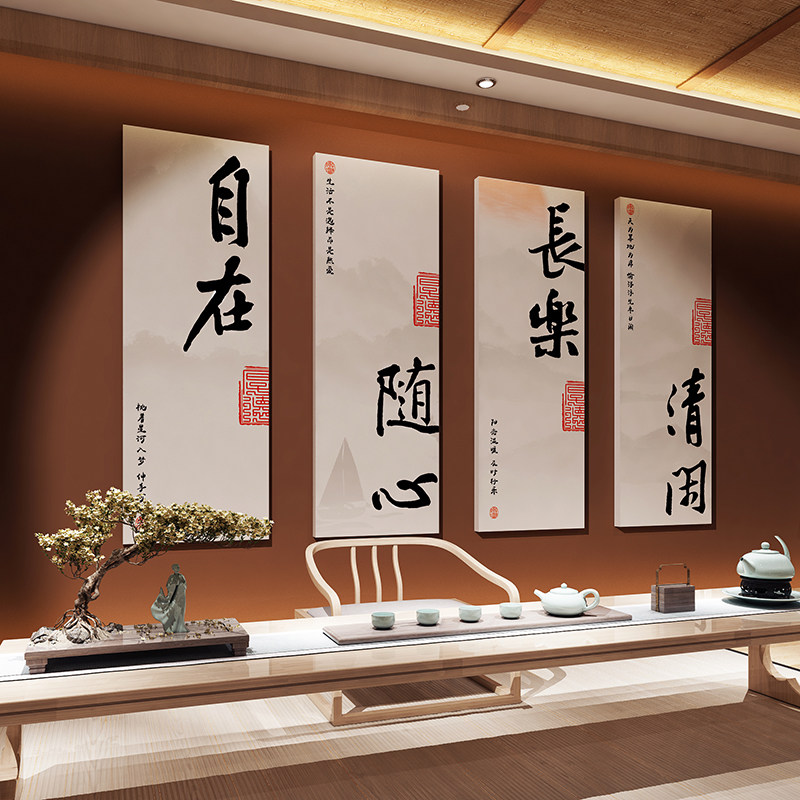 📚 茶室背景装饰挂画布置用品茶楼茶艺馆书房间墙纸立体