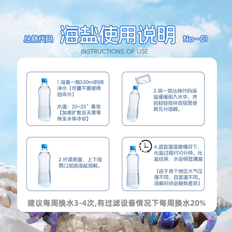 📚 丛林代码寄居蟹专用海盐微量元素高钙硬壳泡澡水族分装海星珊瑚