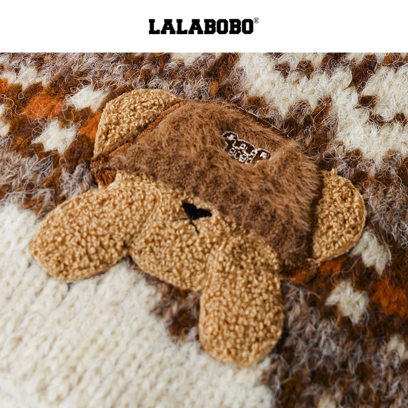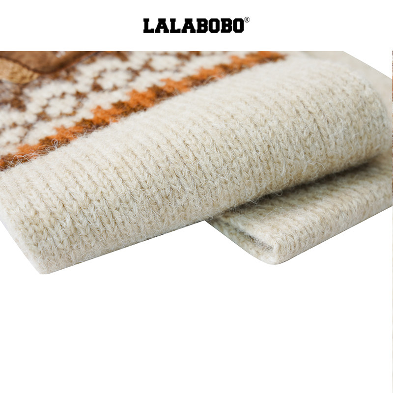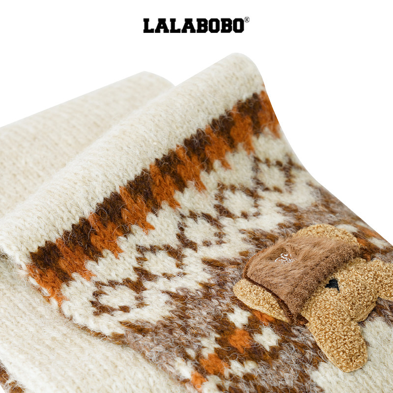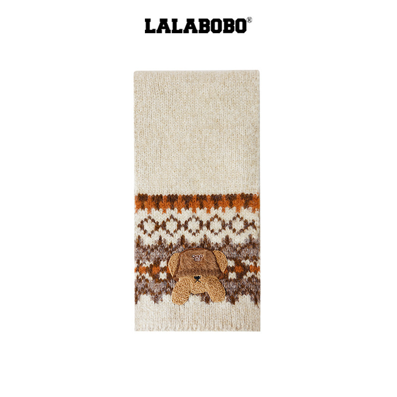 📚 【商场同款】LALABOBO25年冬新款小熊保暖加厚费尔岛格纹白色围巾