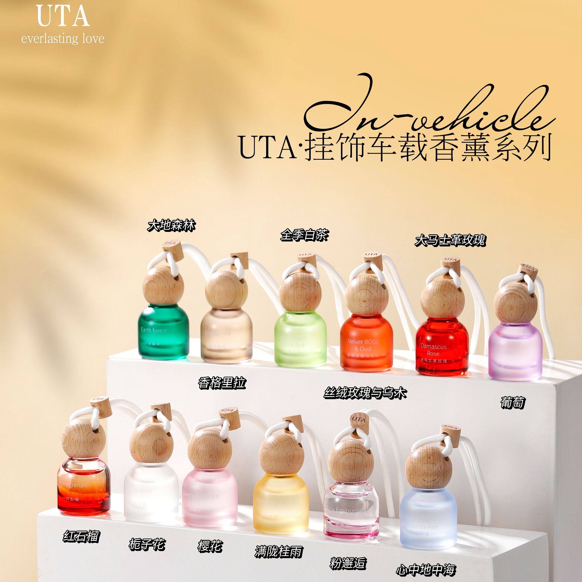 📚 正品UTA车载香薰挂件车内除臭香水吊坠持久留香木盖无火香薰精油