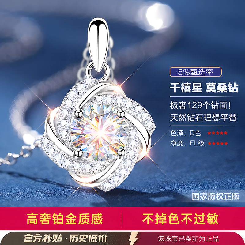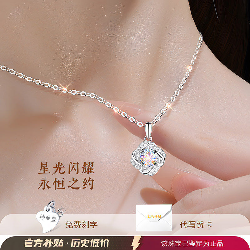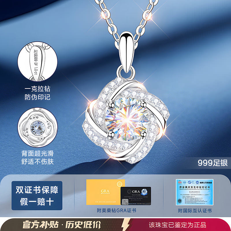 📚 银项链女款莫桑石莫桑钻满钻纯银999四叶草吊坠女士女生女送女友