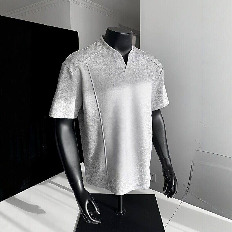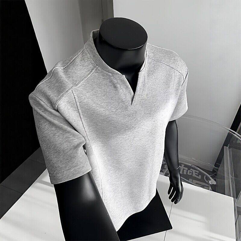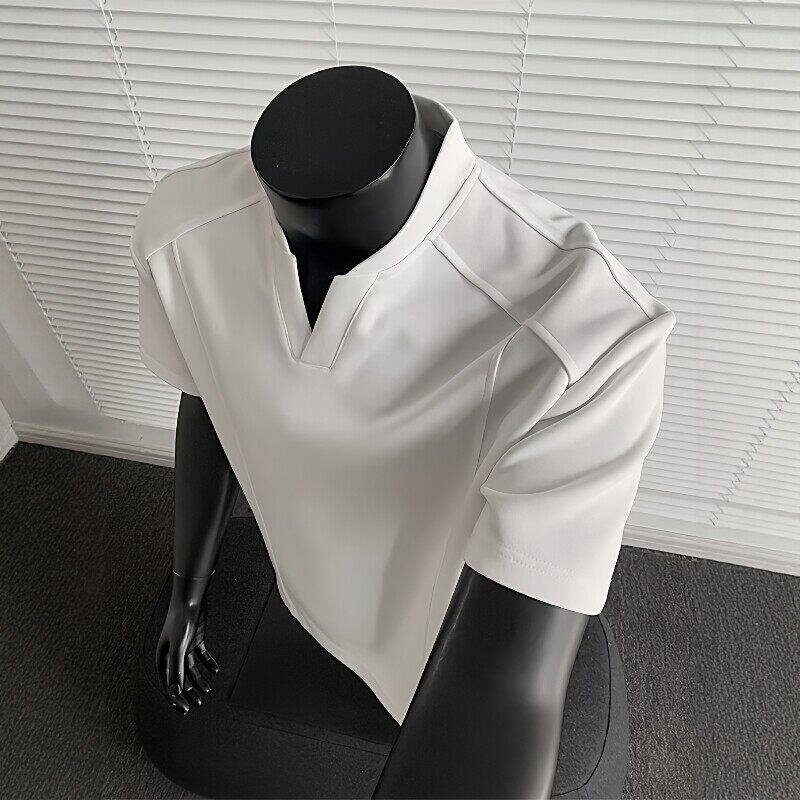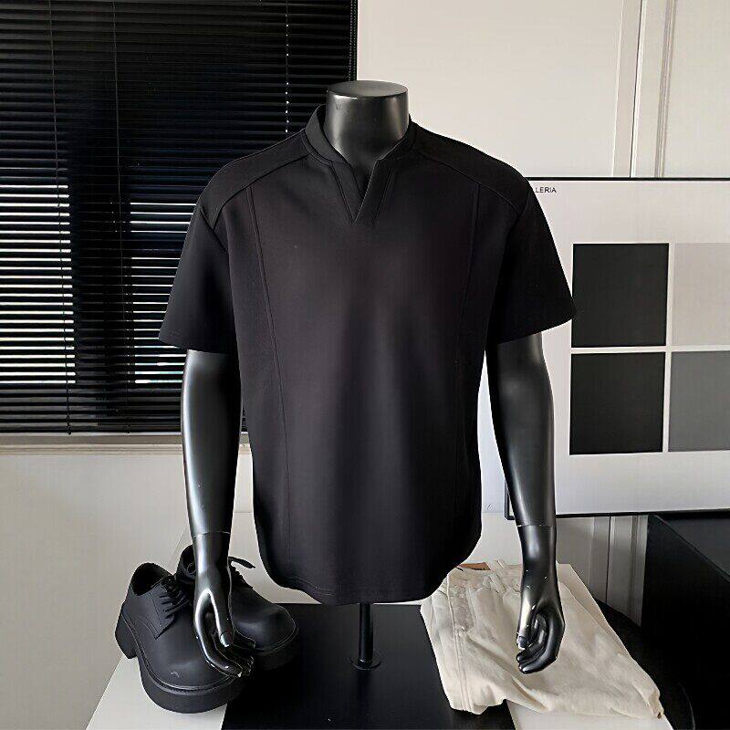📚 v领T恤男士重磅硬挺美式正肩短袖潮牌痞帅炸街夏季纯色半袖polo衫